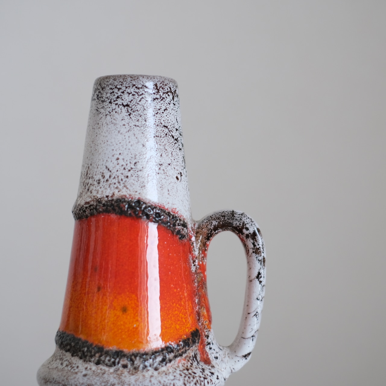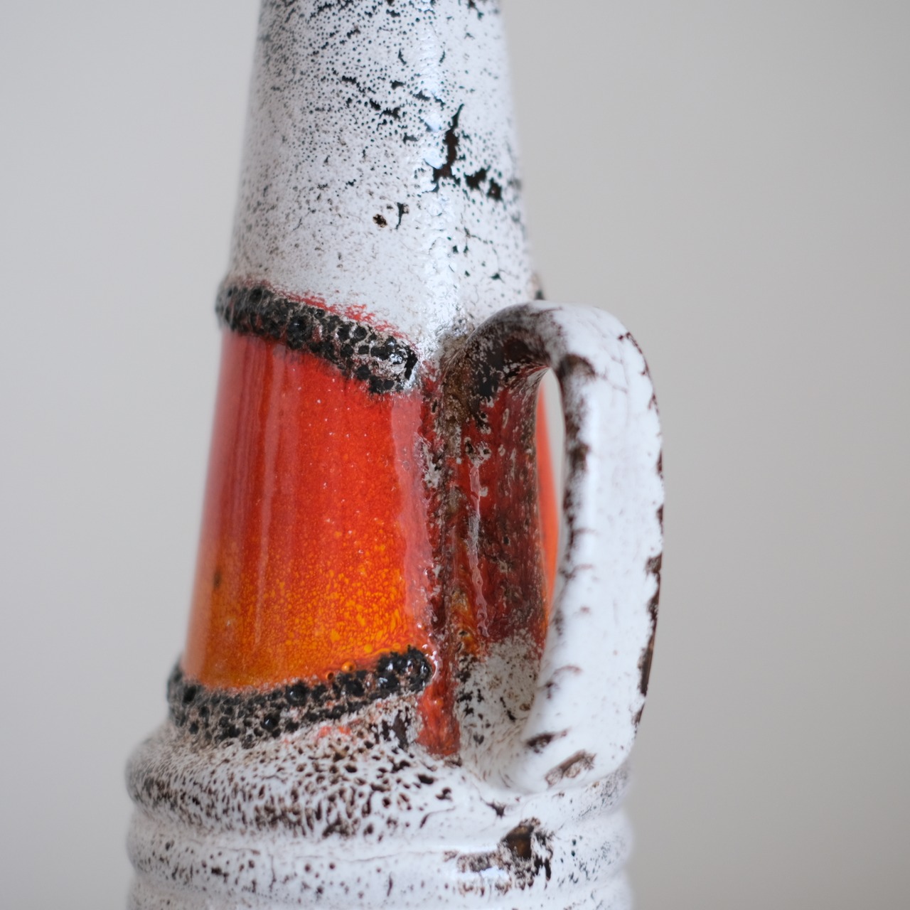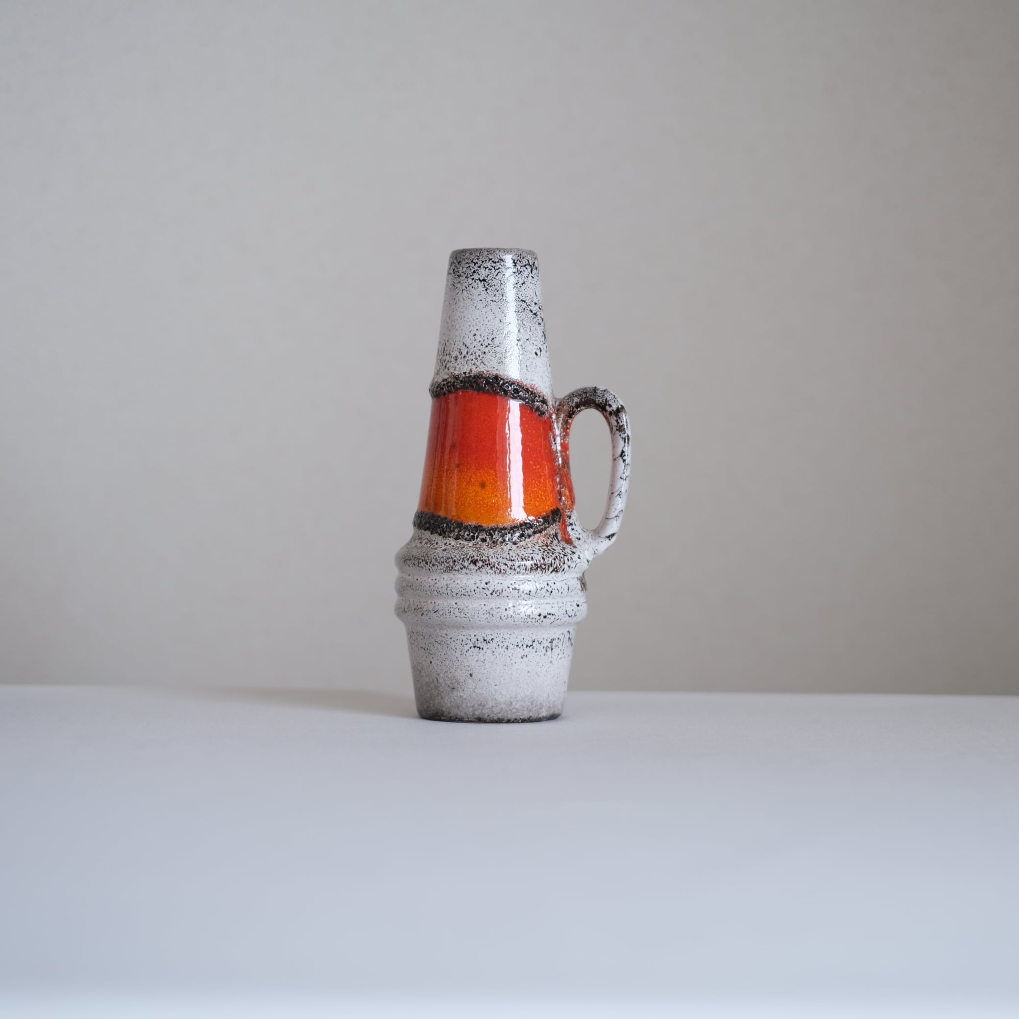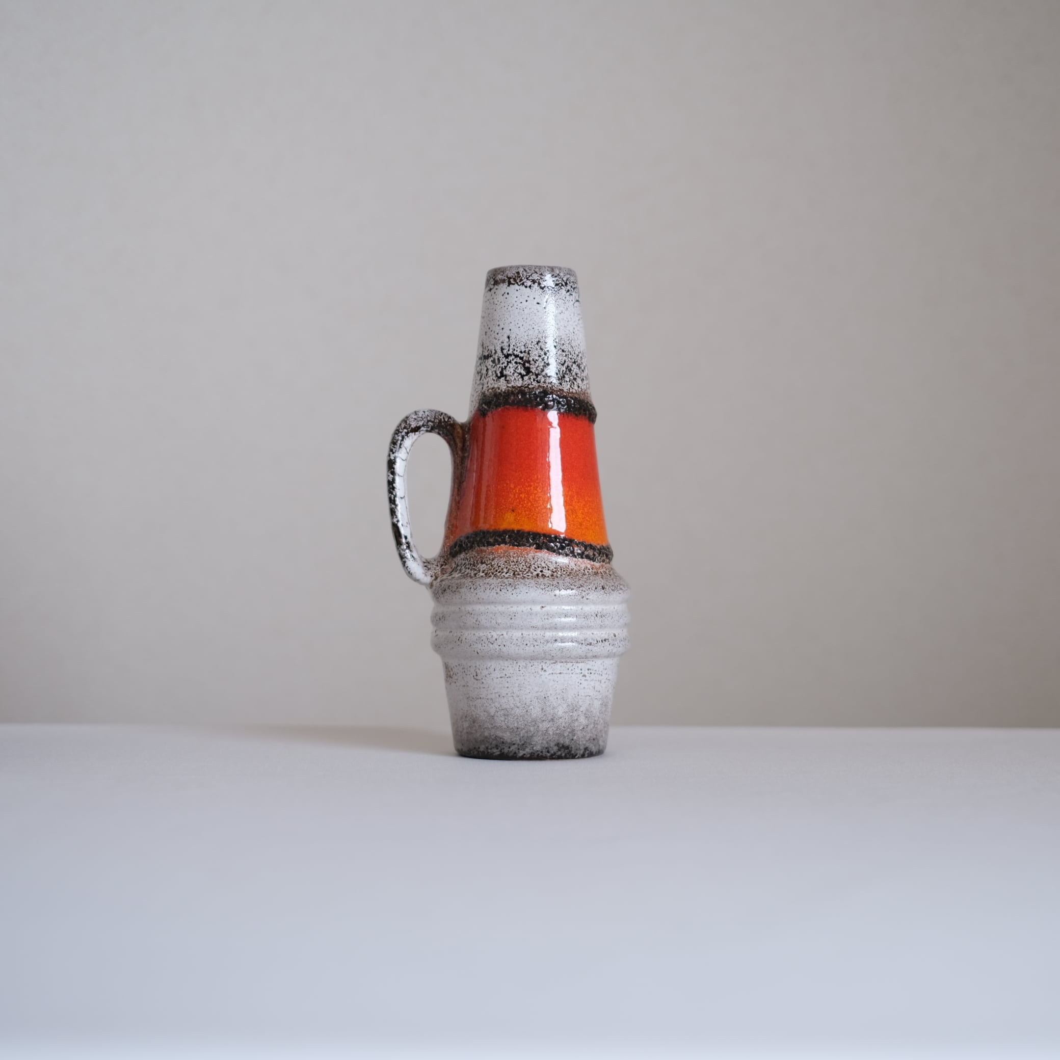 こちらは1971年の1年間のみ生産されていた非常に珍しいフォルム。真っ白な釉薬とオレンジのコントラストが綺麗な個体。色の境目に黒い溶岩釉のパイピングが入っている事で花器の印象が締まっているのもポイント。