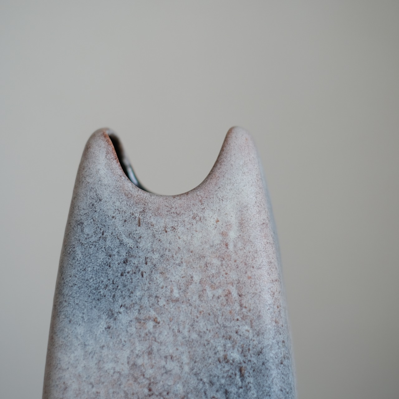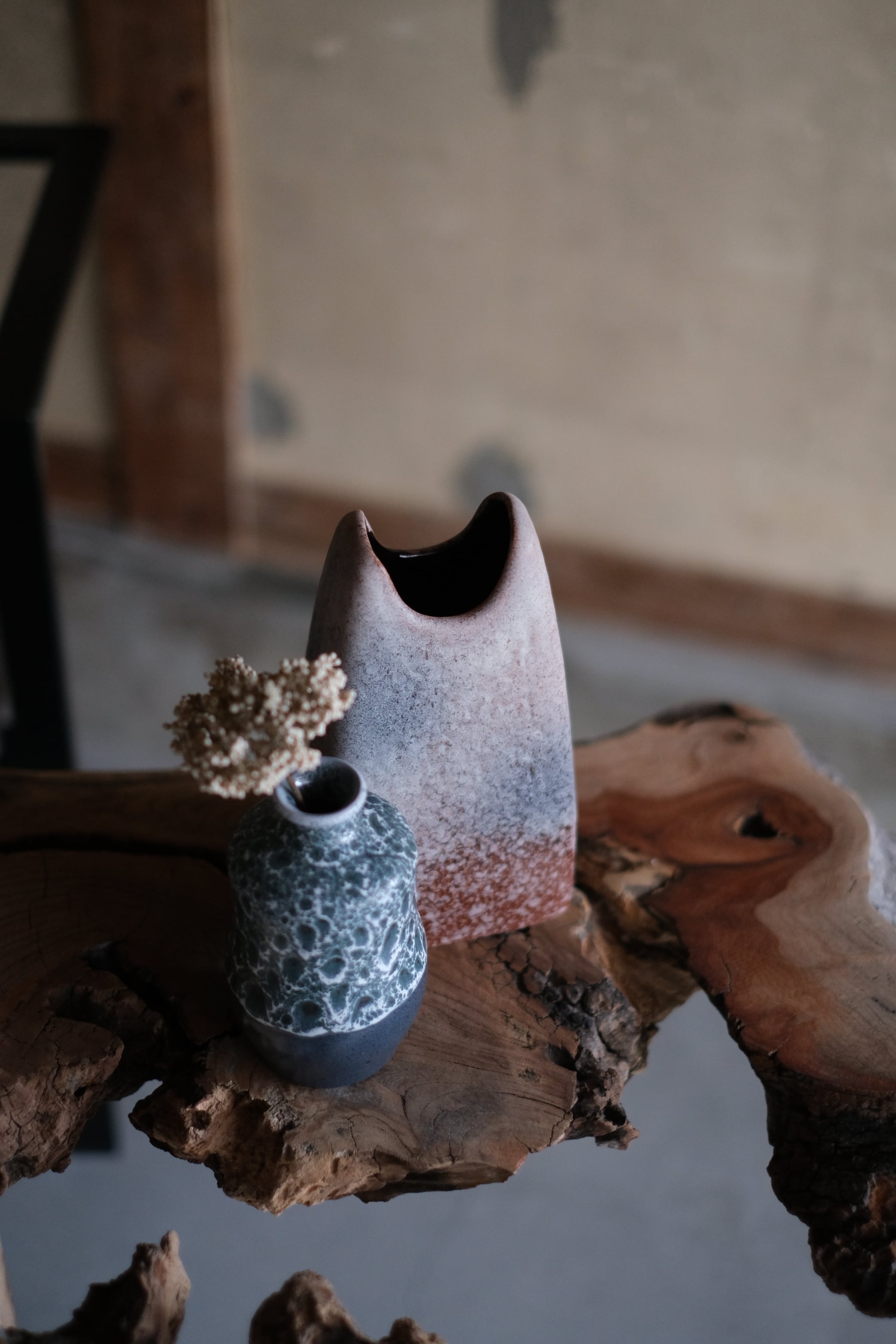 こちらは、U字になった花瓶口が特徴的なフォルム。素朴な釉薬はドウダンツツジや桜など季節ごとの枝ものの植物との相性も良く非常にオススメです。