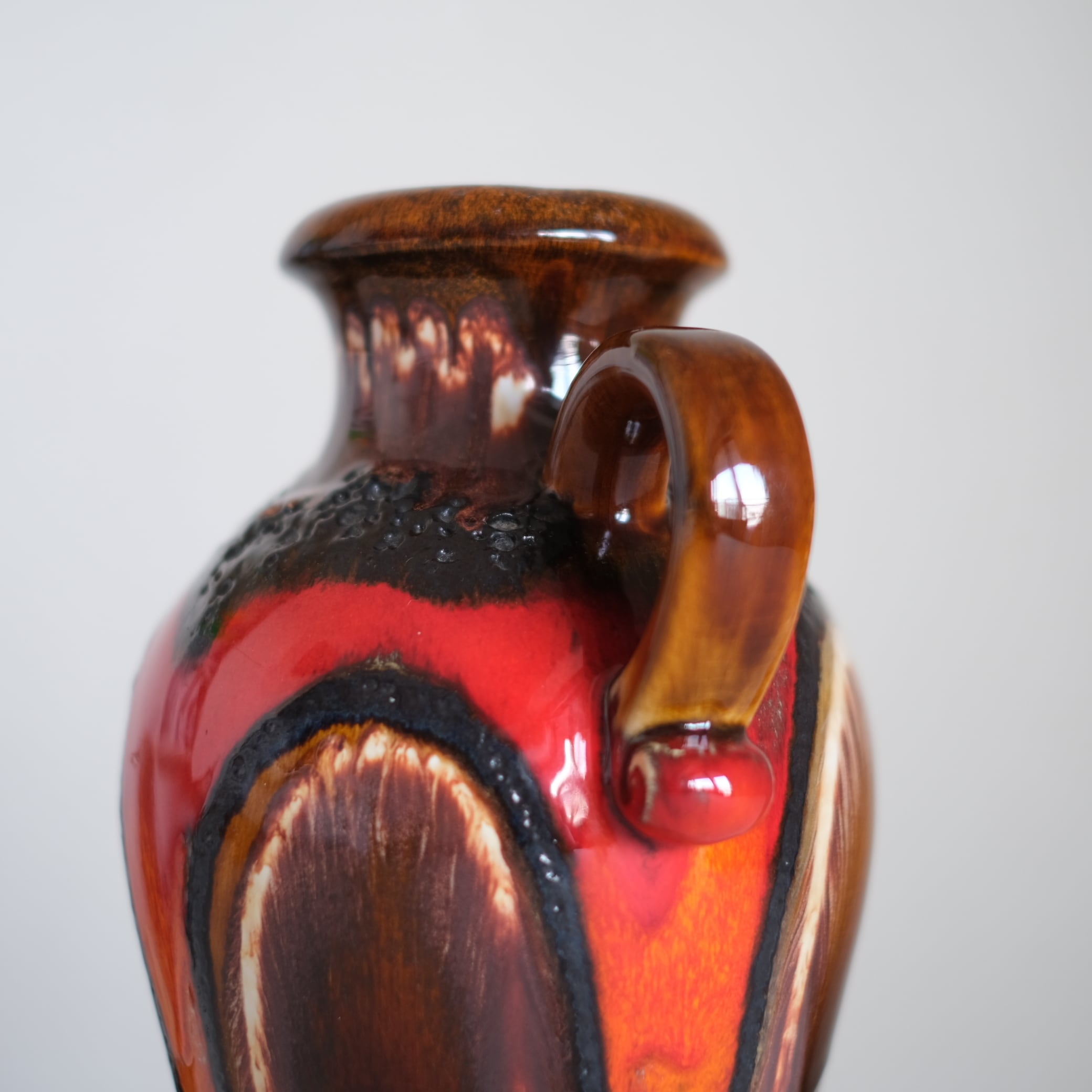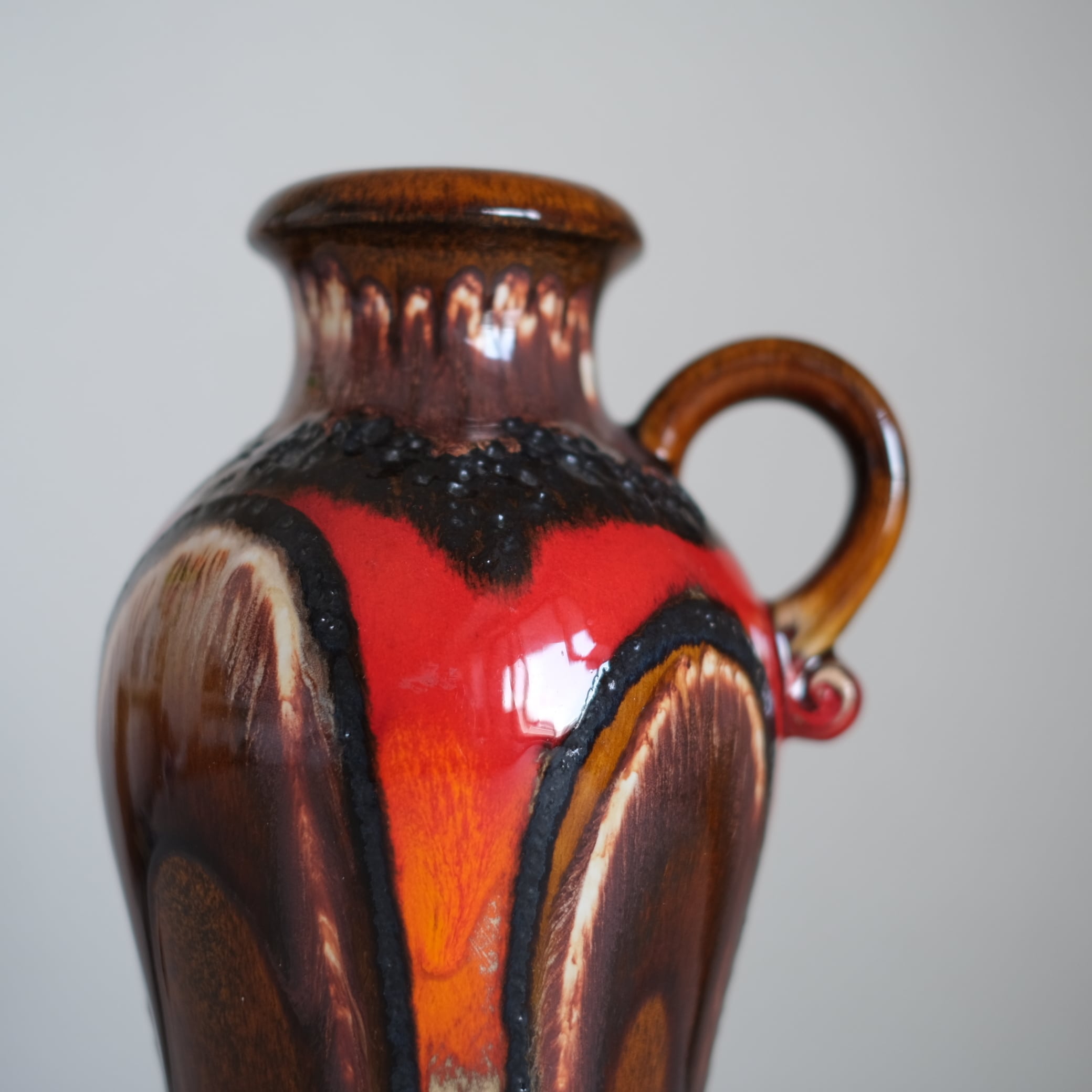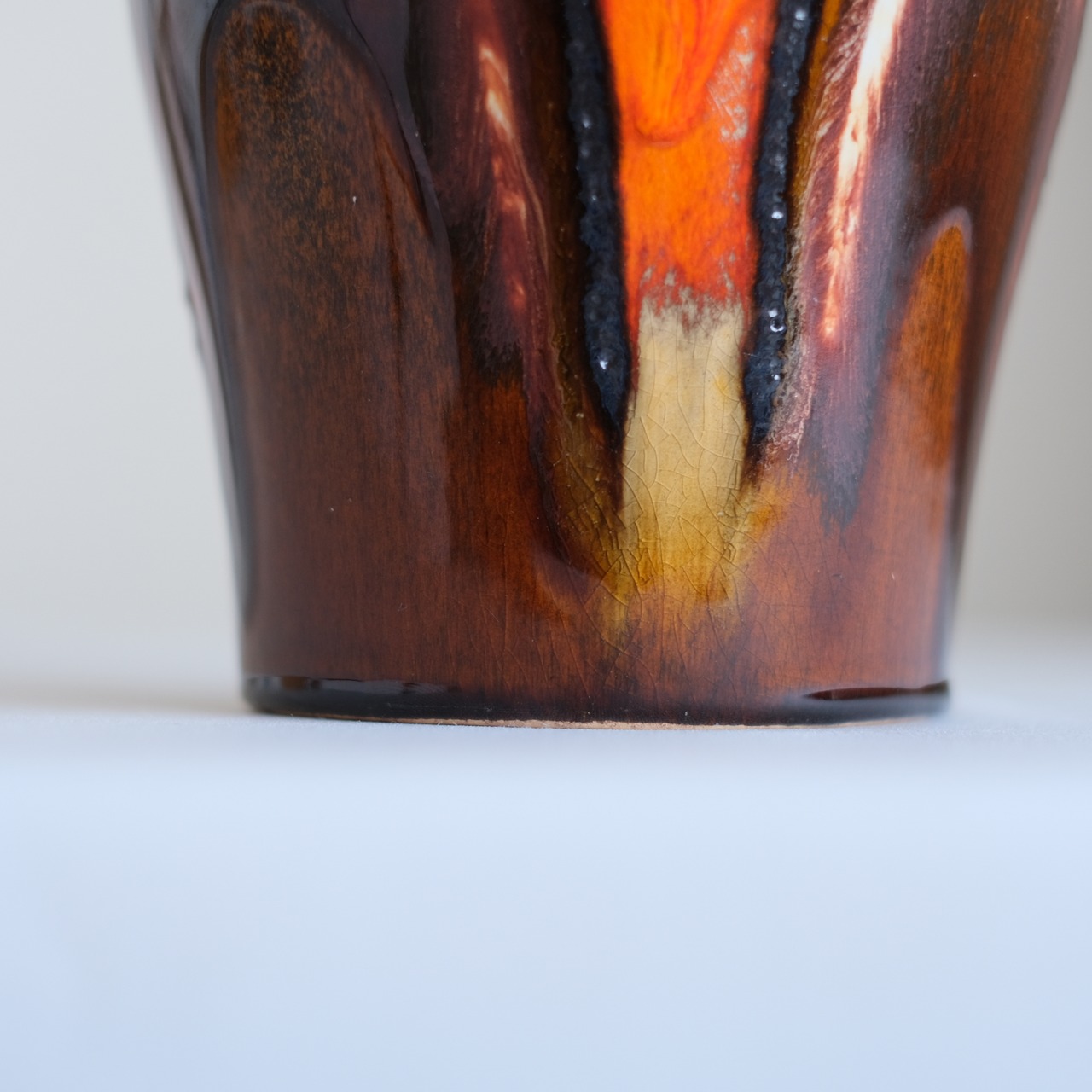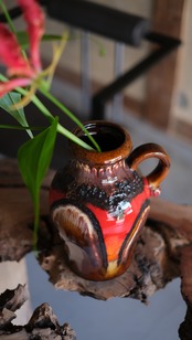 ブラウンに鮮やかなオレンジが効いた配色とその縁に黒の溶岩釉のパイピングが施された、これぞ Fat Lavaというデコレーション(デザイン)。こちらは高さ27cmで存在感のある個体なので、リビングやshopなど少し広い空間のアクセントとしてオススメです。