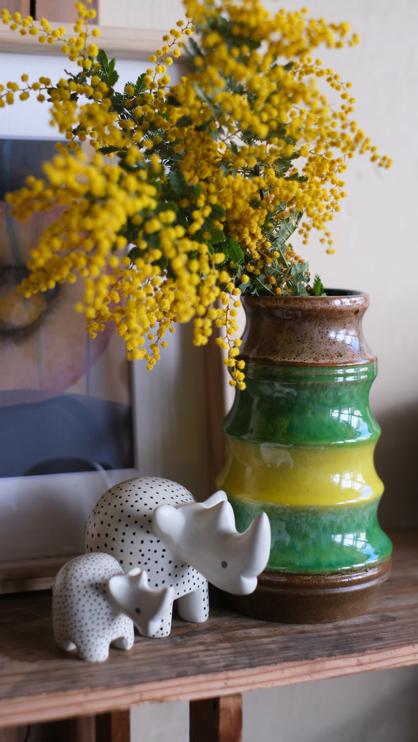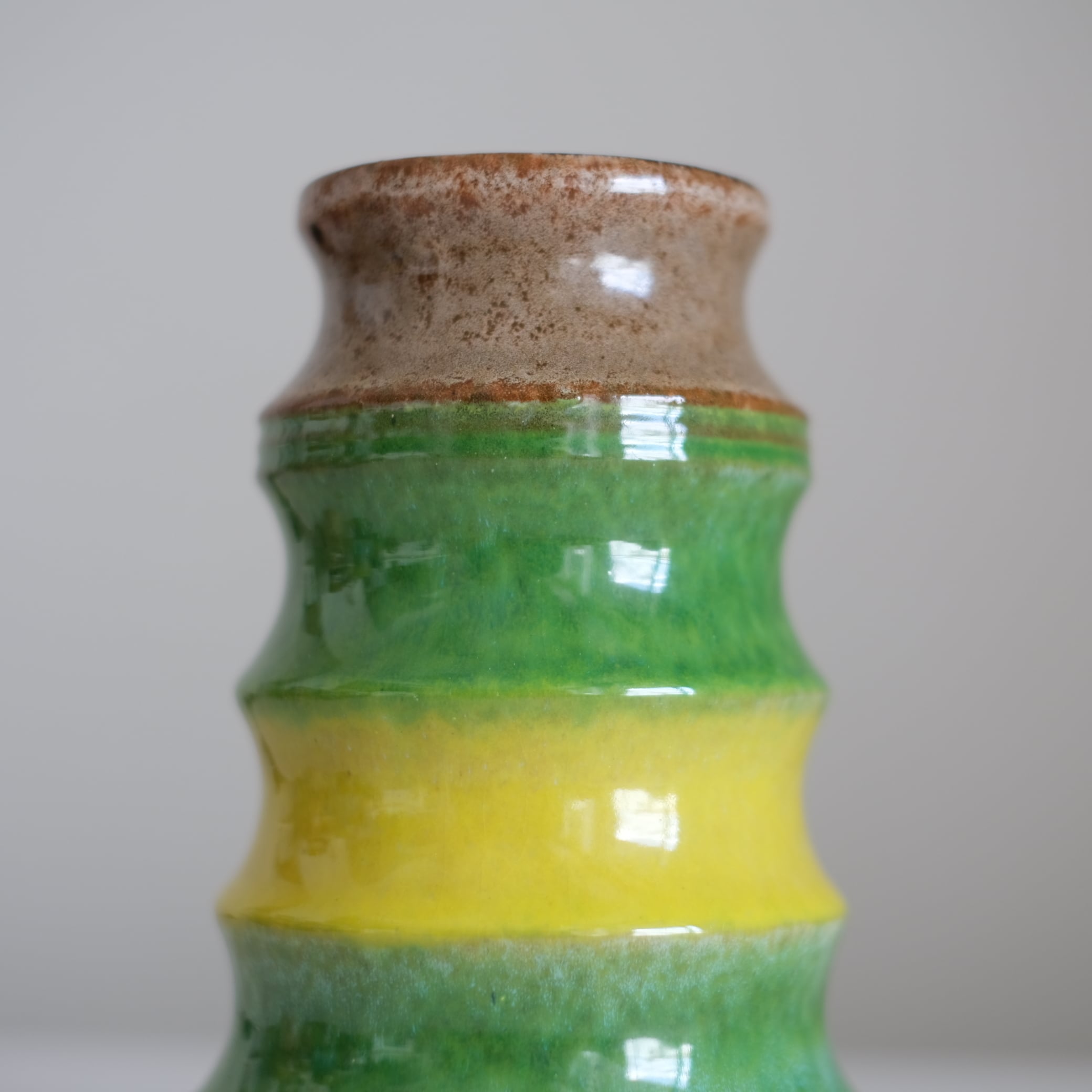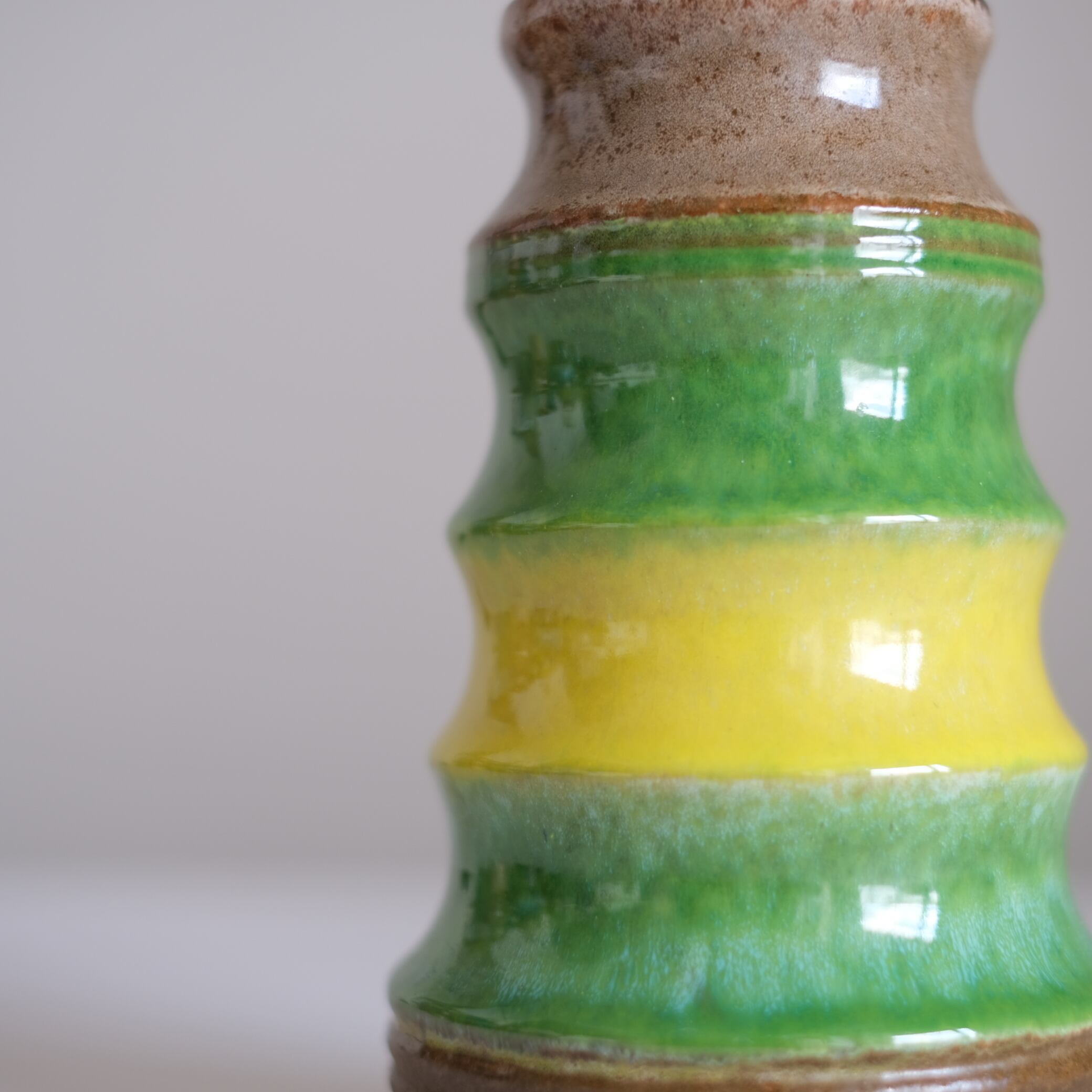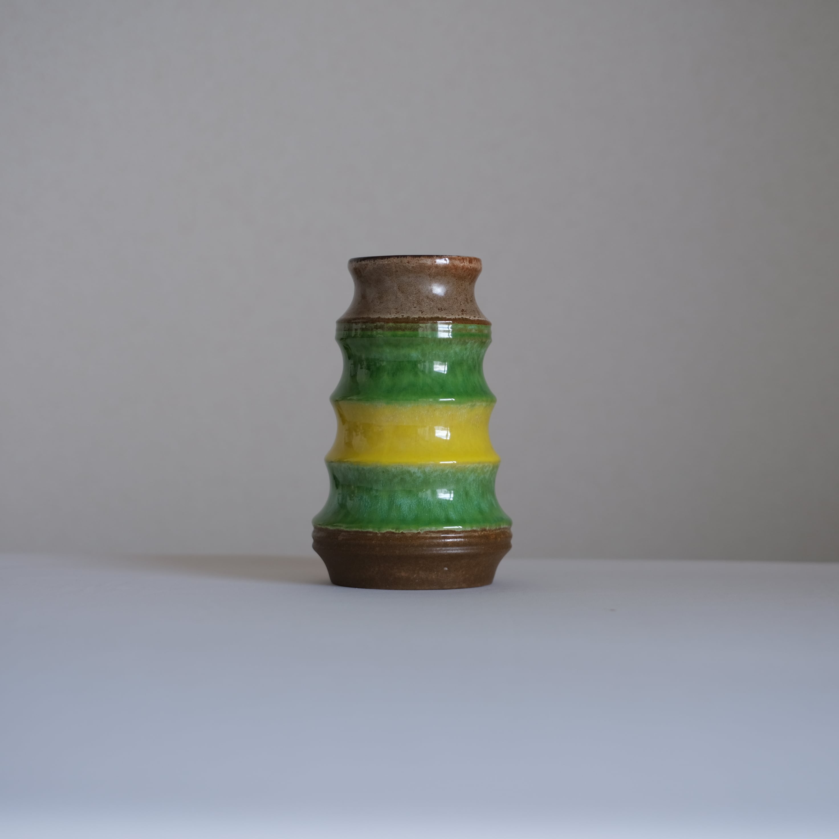 ドイツの豊かな色彩感覚が凝縮されたような、イエローとグリーンの花器。