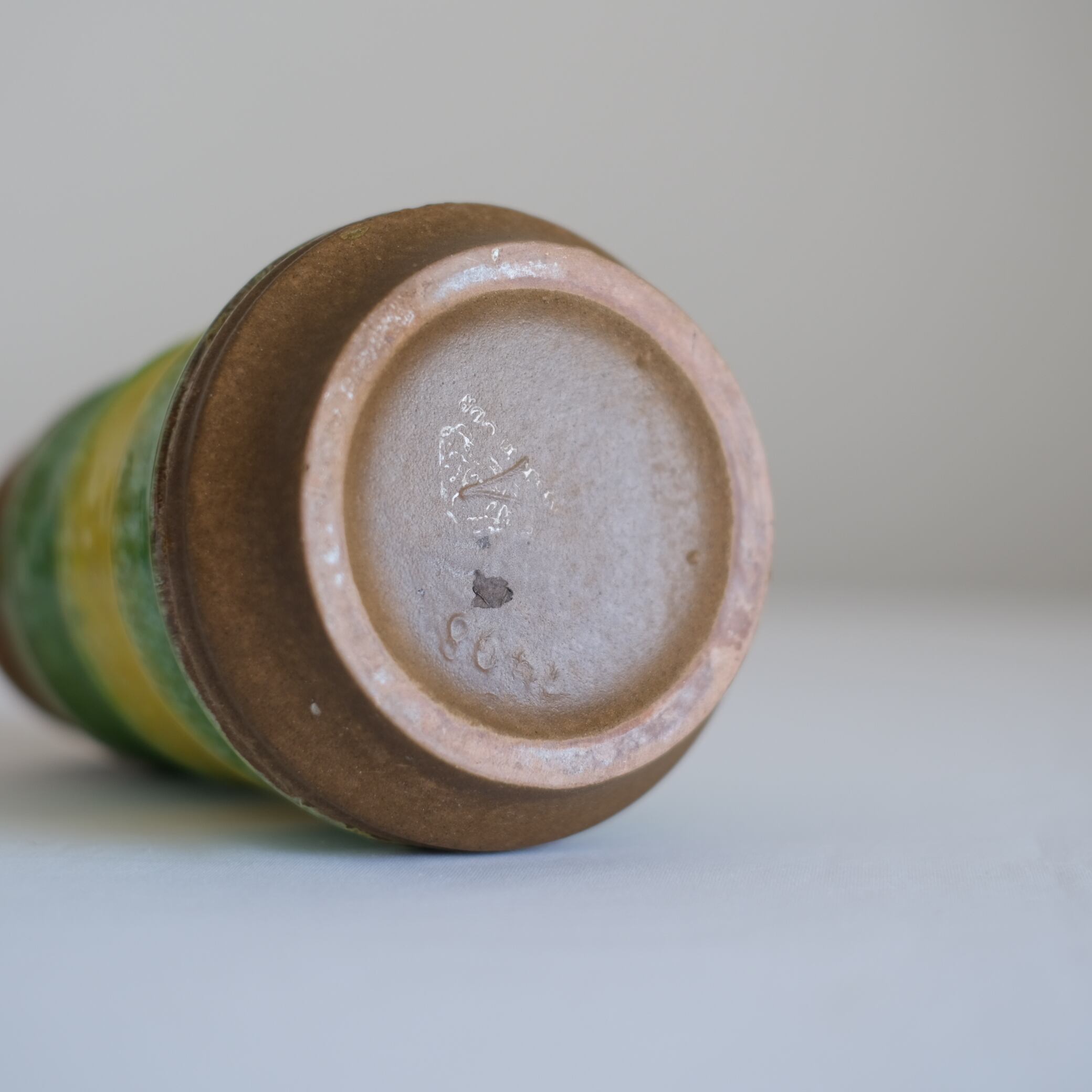 西ドイツ製の「Fat Lava」に見られるエネルギッシュで力強い表現に比べ、東ドイツの陶器はどこか保守的で温かみのある、素朴なデザインが特徴です。北欧テイストのインテリアはもちろん、落ち着いた日本家屋との相性も抜群。「ヴィンテージ陶器に興味はあるけれど、あまりに個性的すぎるものはちょっと…」という方にもぜひ手に取っていただきたい一点です。