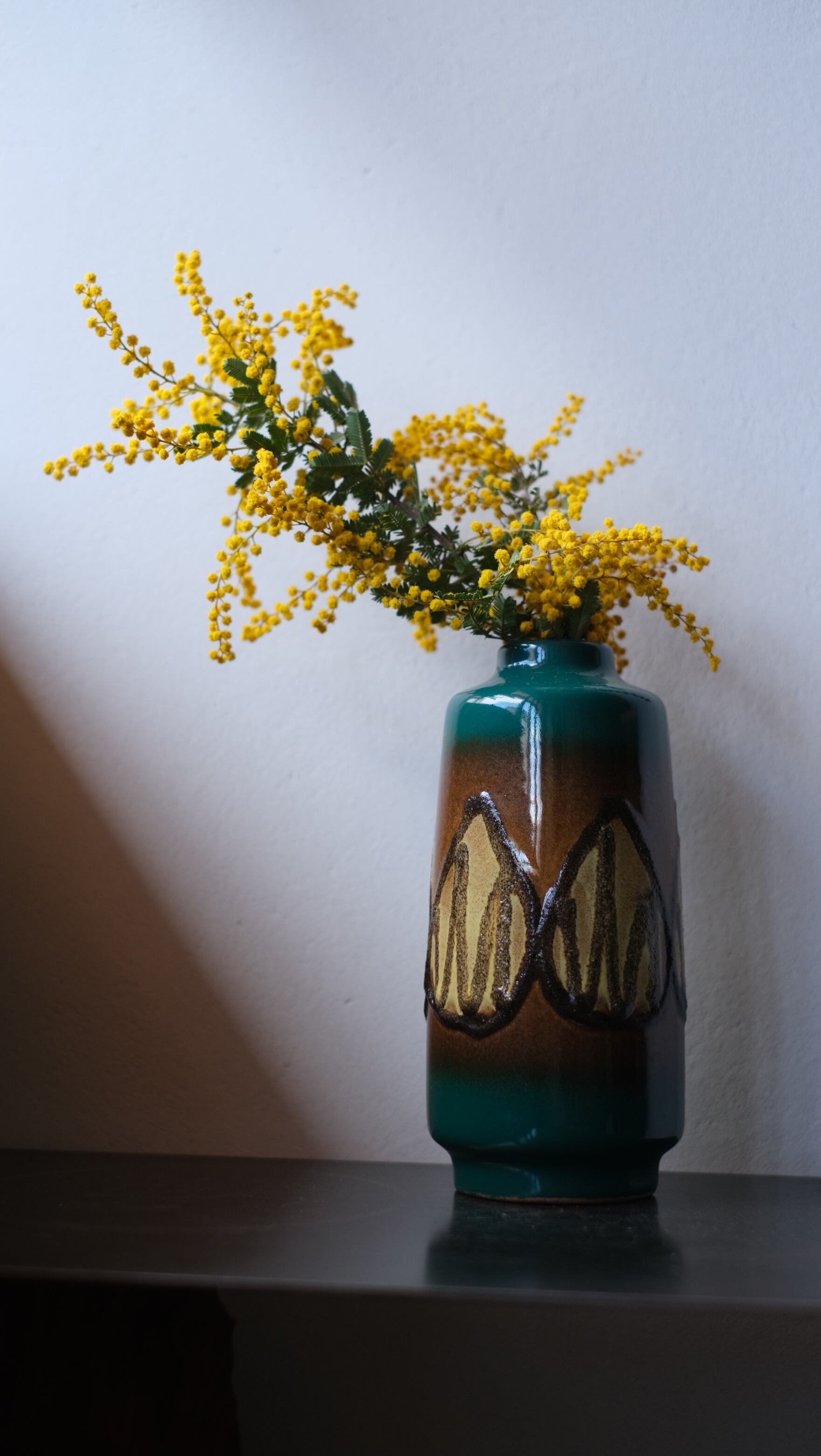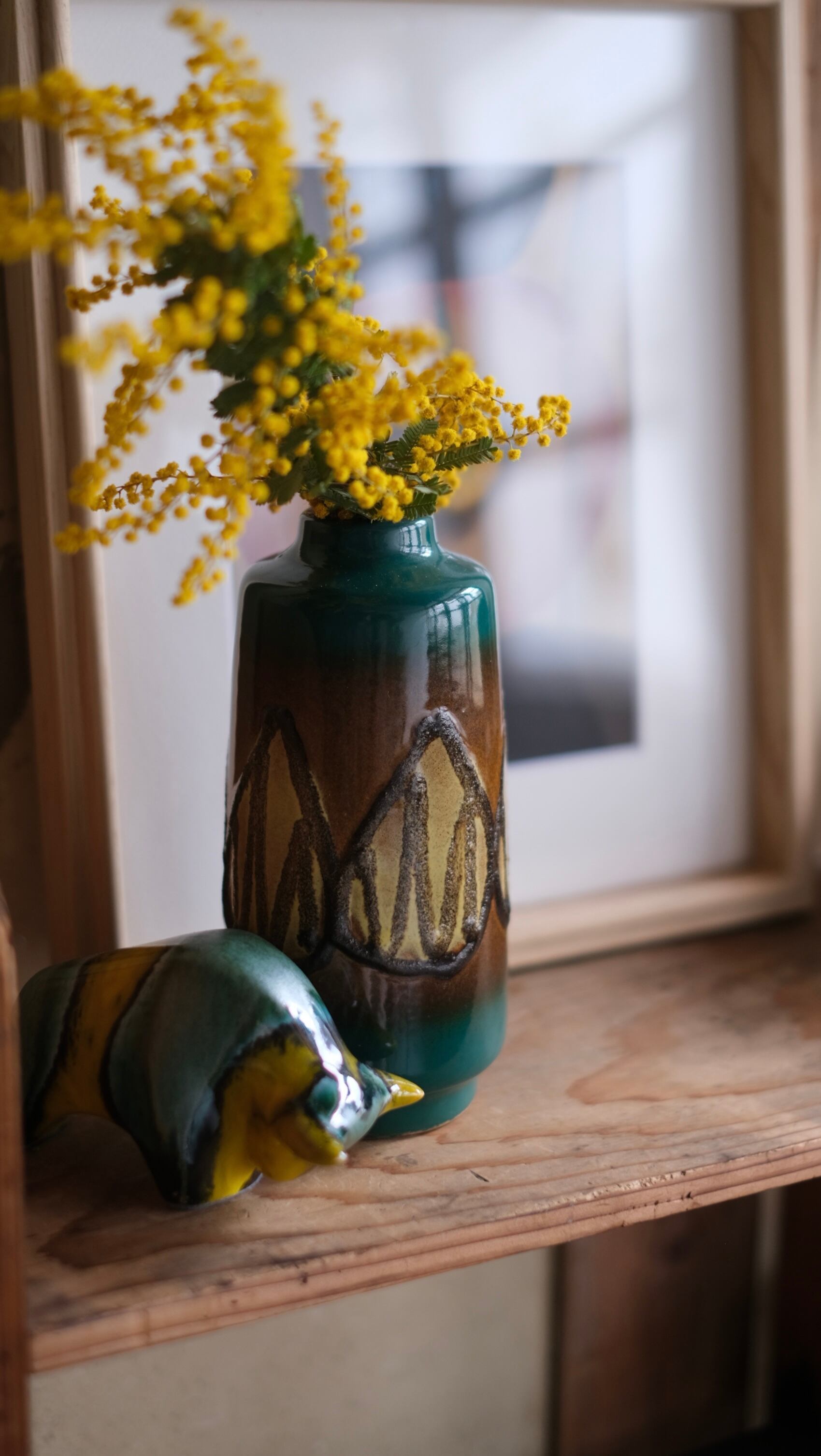 西ドイツ製の「Fat Lava」に見られるエネルギッシュで力強い表現に比べ、東ドイツの陶器はどこか保守的で温かみのある、素朴なデザインが特徴です。北欧テイストのインテリアはもちろん、落ち着いた日本家屋との相性も抜群。「ヴィンテージ陶器に興味はあるけれど、あまりに個性的すぎるものはちょっと…」という方にもぜひ手に取っていただきたい一点です。