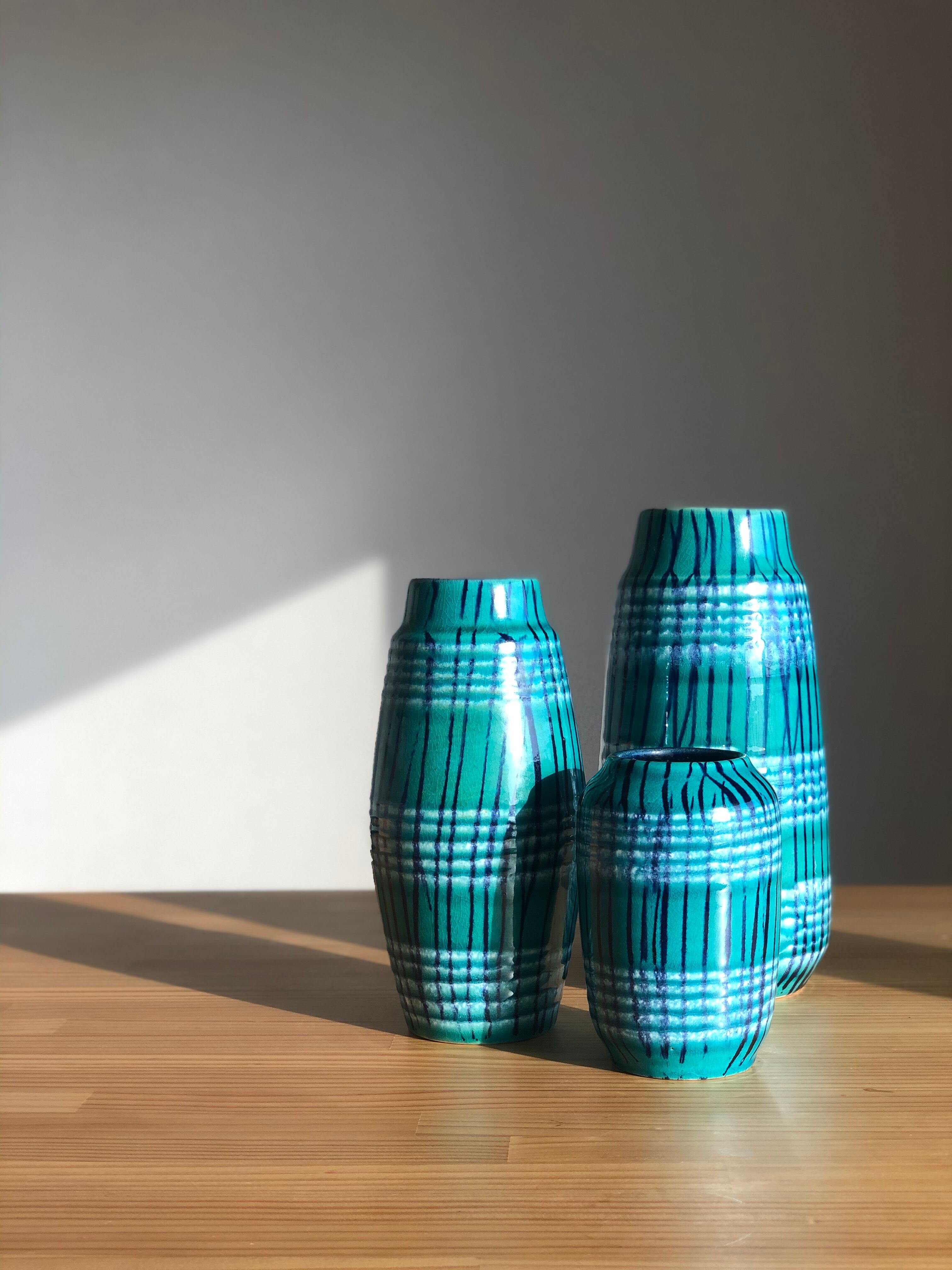 fatlavaの中でも色、形の種類が豊富で特定の品番のみを集めるコレクターも存在するscheurich。こちらはFat Lavaでは珍しい爽やかなターコイズカラーでここ最近あまり見かけ無くなったカラーです。ターコイズカラーに薄っすらと白のボーダーが爽やかで是非実物を見て頂きたい作品です!