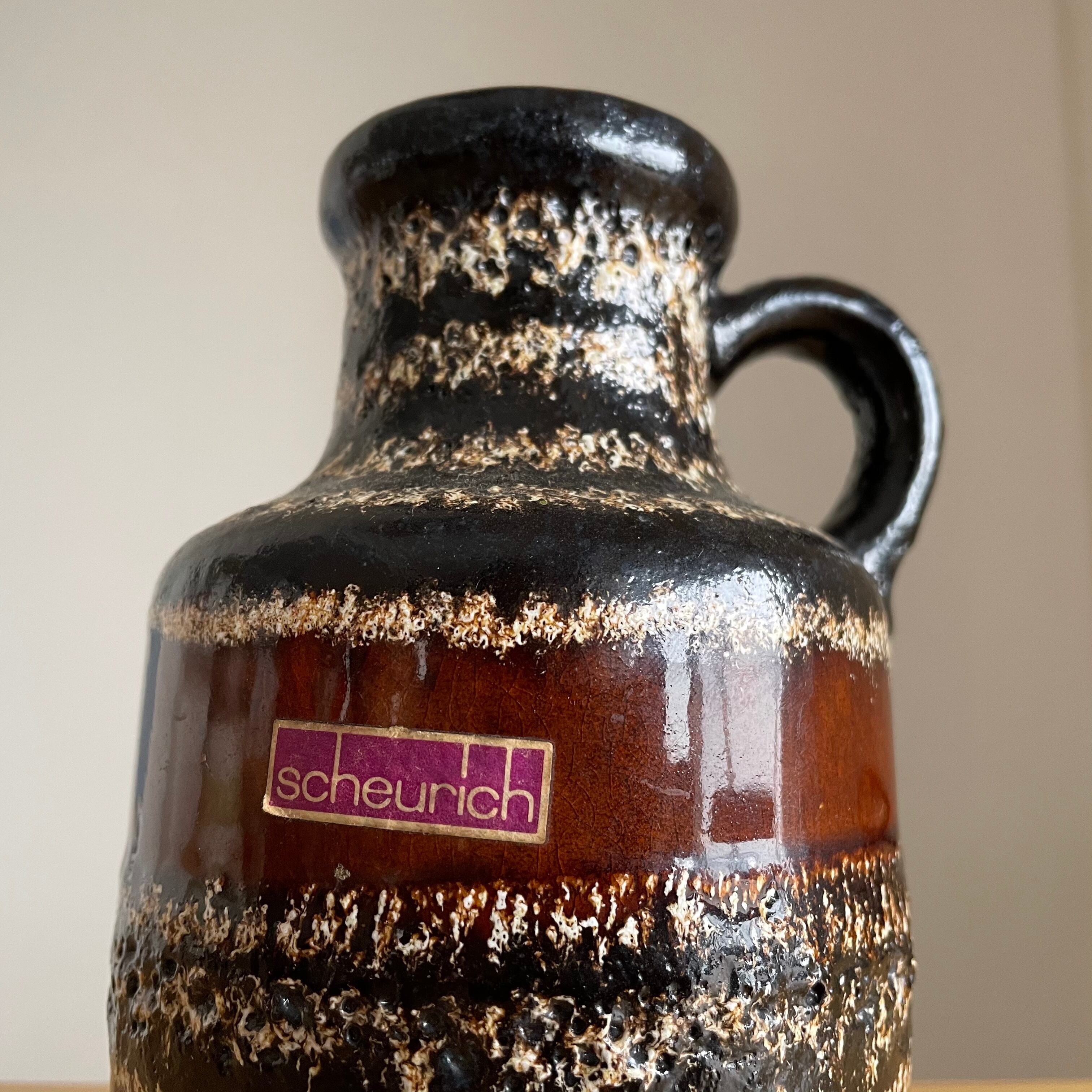 こちらはダークブラウンに艶のあるブラウンとベージュのボーダーで、たくさんのscheurichを見てきましたが珍しい柄だと思います。小さめのポテっとしたフォルムもとても可愛らしいです!一輪挿しに丁度良いサイズ感です。