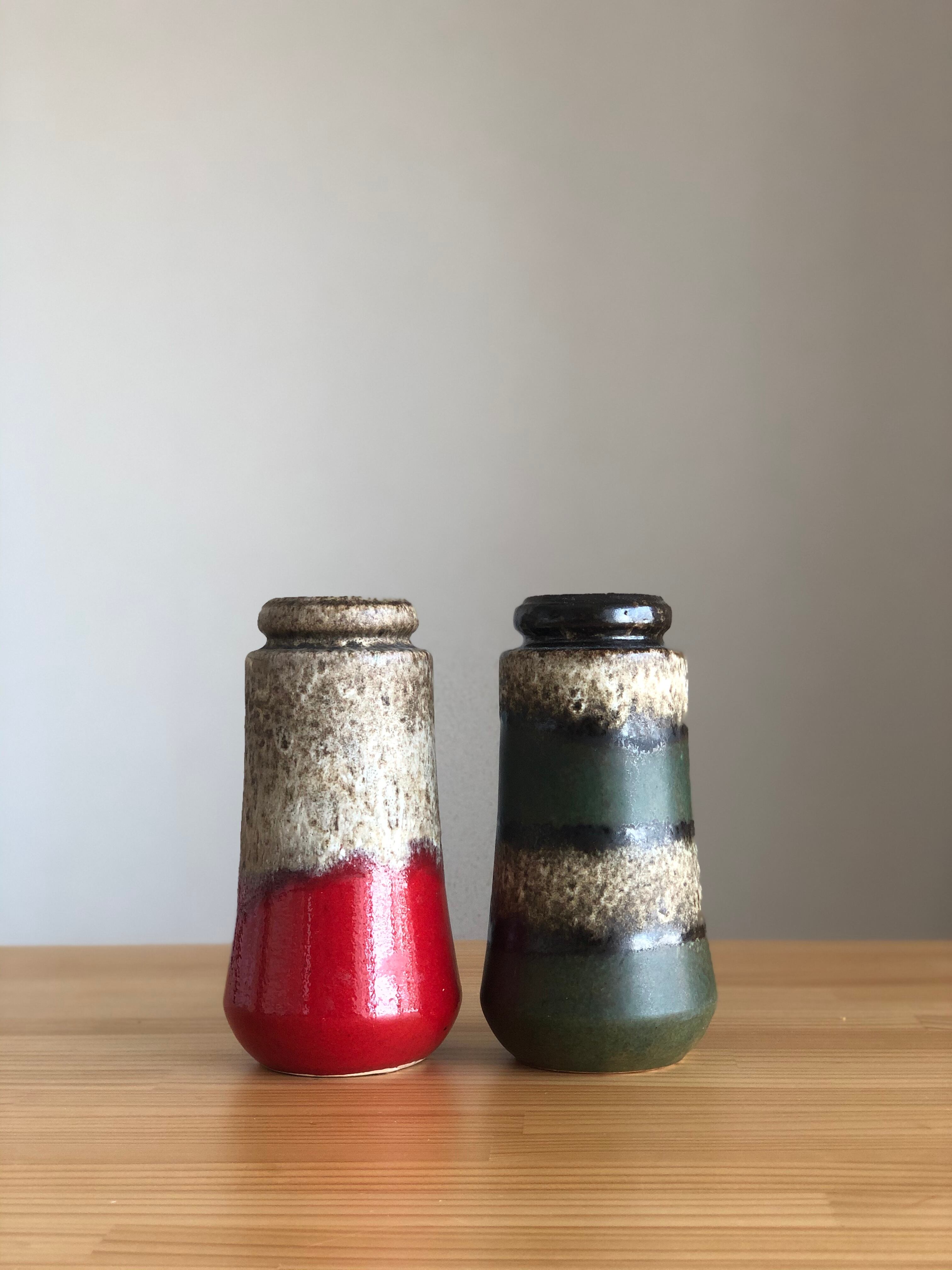 こちらはモスグリーンにベージュの釉薬が垂れたデザインでかなり珍しい配色の作品です。普通scheurichは型違いで同じデザインは良くあるのですが、この配色は見た事はありません!