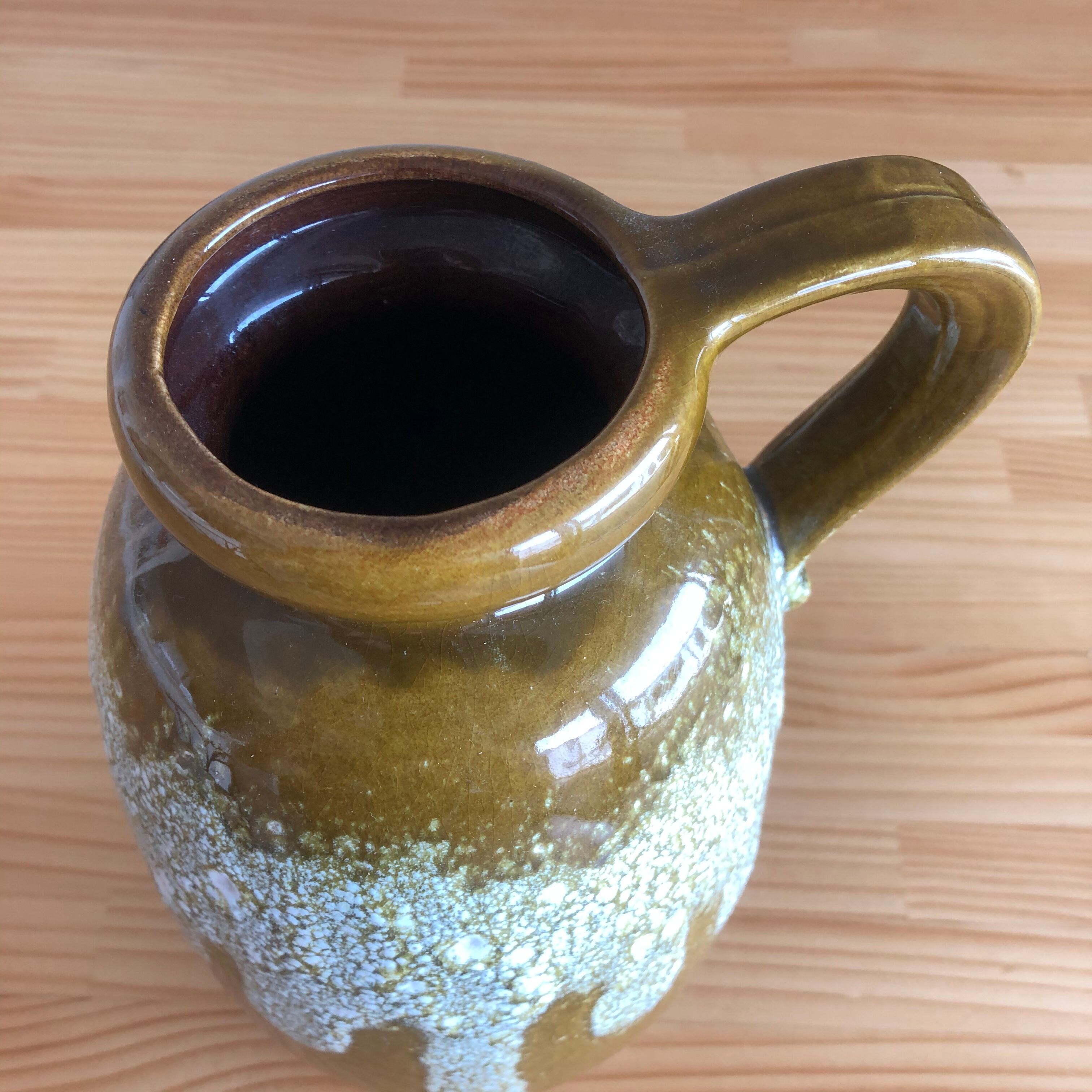 こちらは、落ち着いたマスタードカラーにホワイトの釉薬が雰囲気良く垂れたデザインでかなりセンスの良い作品だと思います。見た目に反して落ち着いた雰囲気があり、アフリカのインテリアとも相性抜群です!サイズも大きくディスプレイとしてもかなりインパクトはあると思います。