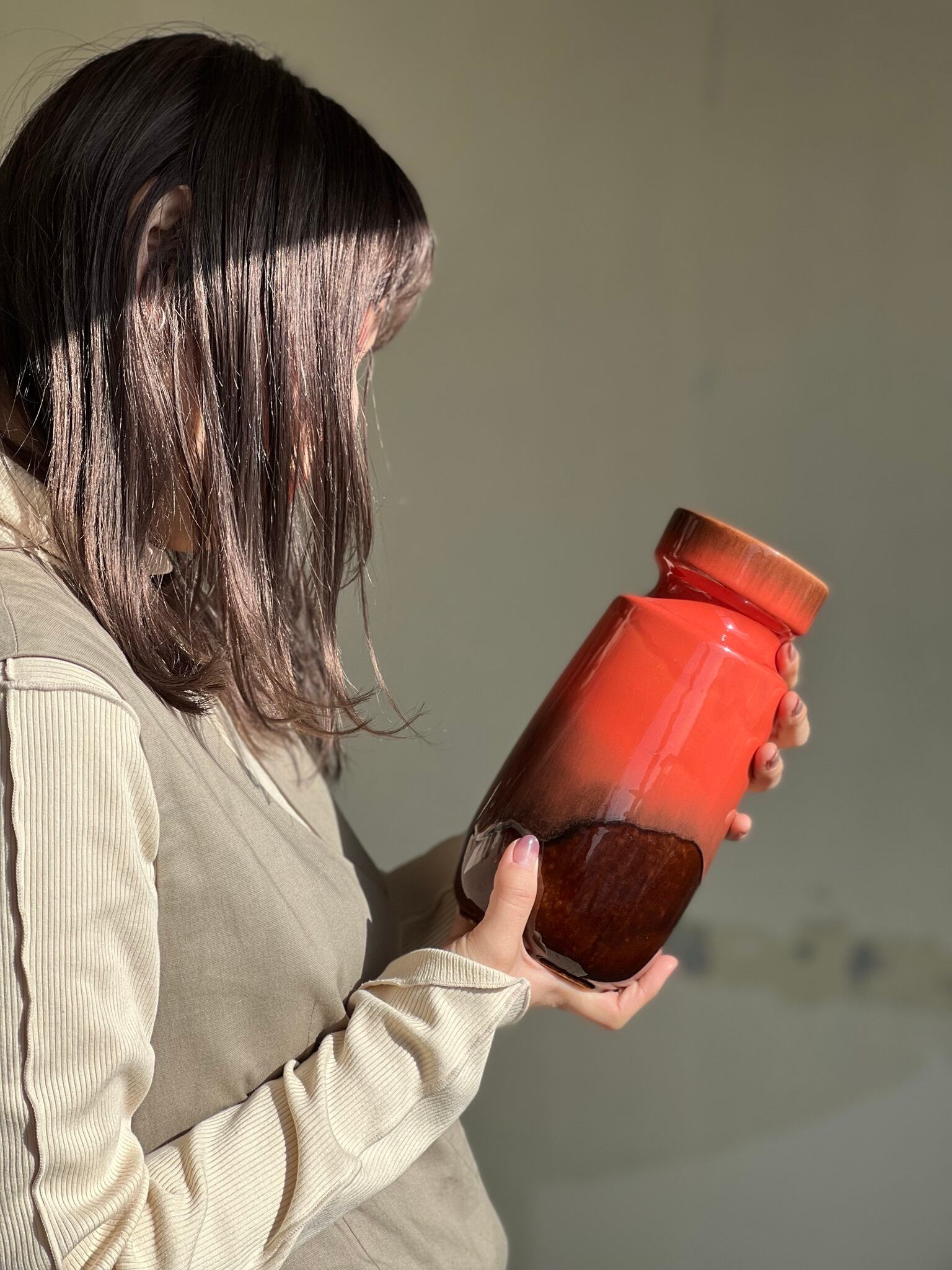 こちらは海外ではオレンジと表記されていますが、実際はサーモンピンクに違い綺麗なカラーで珍しいカラーの1つです。 艶のある釉薬も他の scheurichには無いデザインでオススメです。このデザインの242-22はかなり数が少ないので希少性も高い作品です。