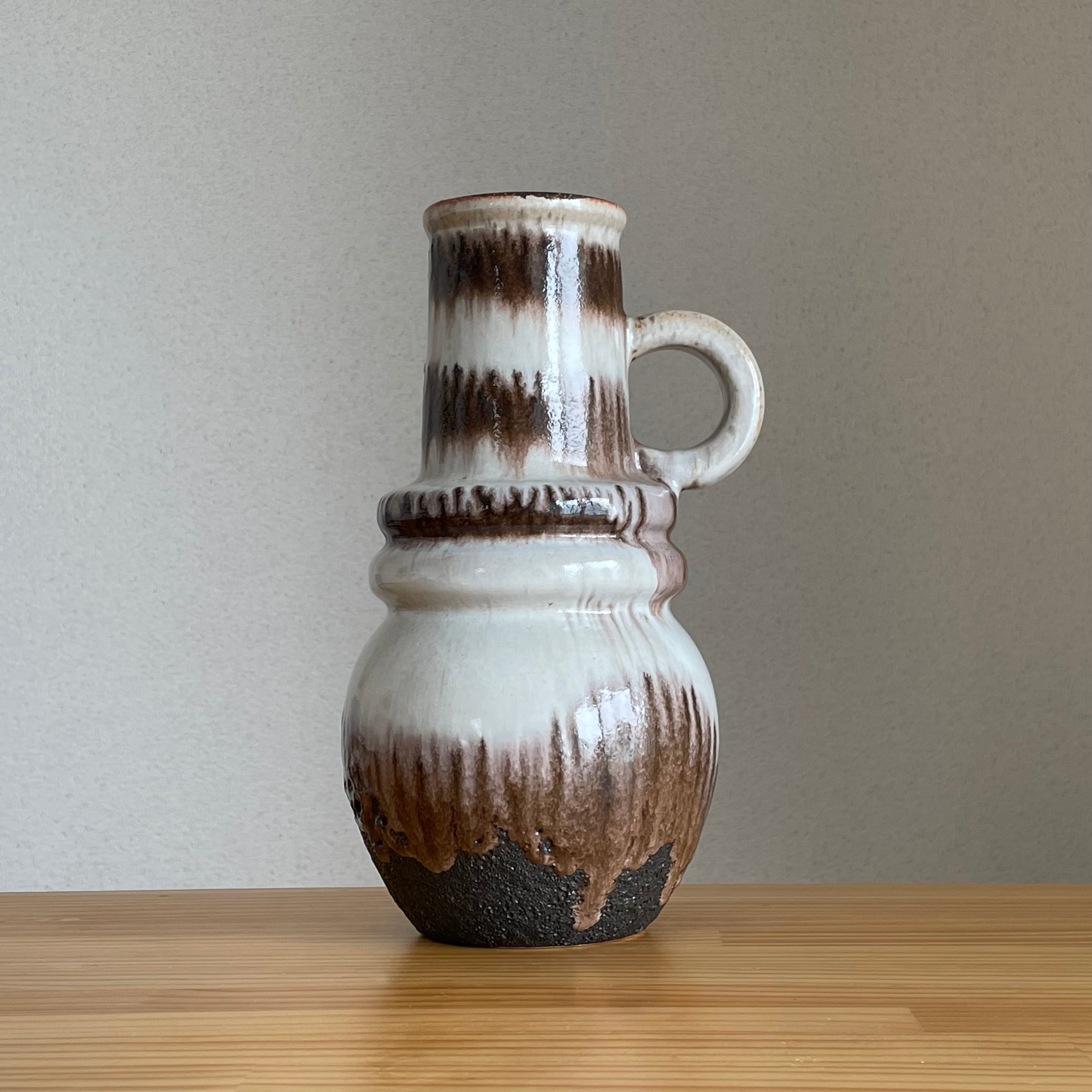 こちらはかなりセンスを感じる作品で、ホワイト×ブラウンのマーブルの柔らかさがありながら瓶底付近はアスファルトのようなザラっとした無骨なブラックが入りそのバランスが何とも素晴らしい作品で非常にオススメです。