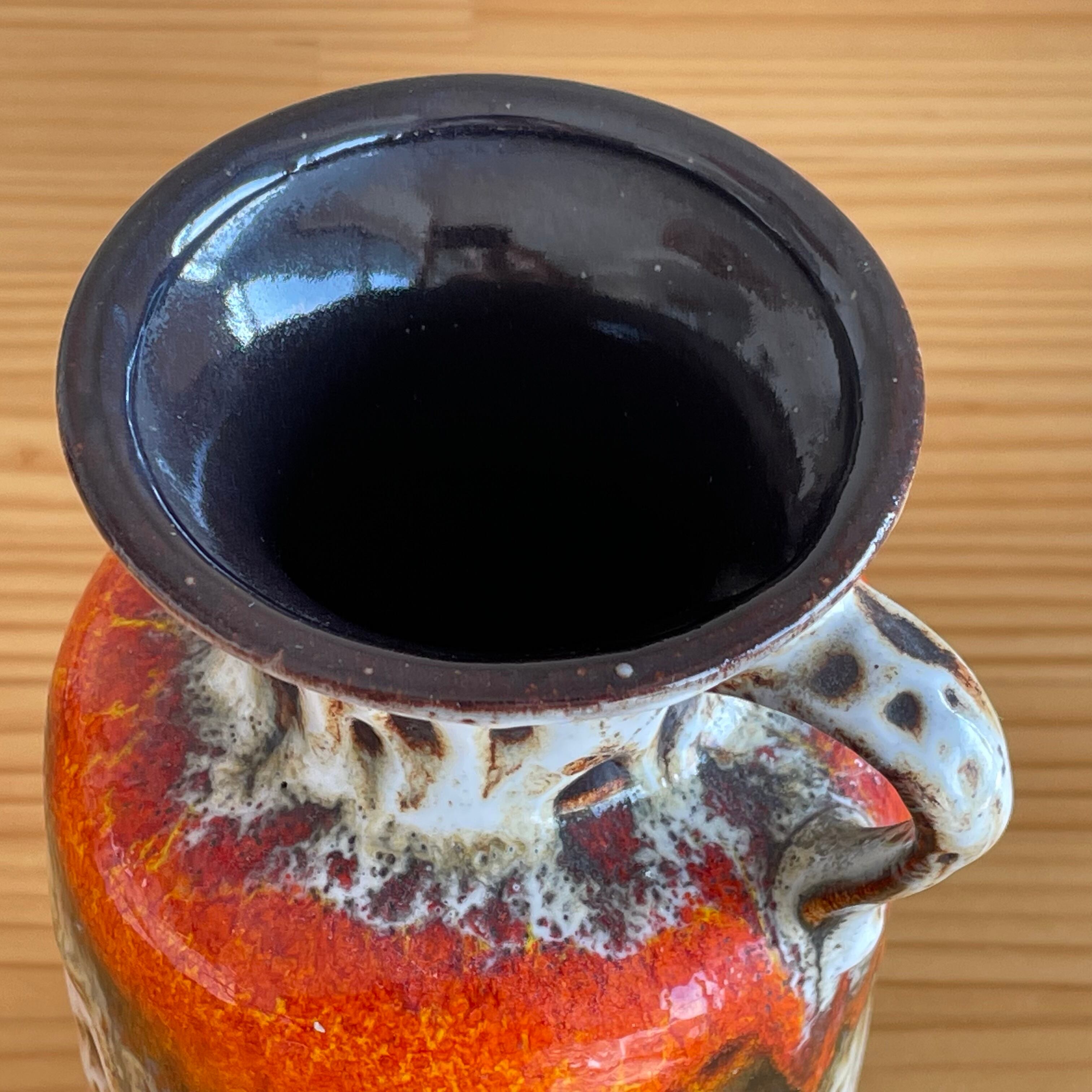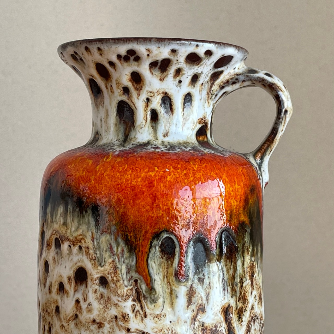 Fat Lava の中でもjasbaはデザインが豊富で柔らかいタッチのハンドペイント等、和を感じる作品も多く面白いメーカーです。こちらは、jasbaの中ではメジャーなデザインで毒々しい釉薬使いがこれぞFat Lavaというような作品でオフホワイト、ブラウンにオレンジがアクセントになったセンスを感じるデザインです。様々なテイストのインテリアにマッチするので非常にオススメです。ここ最近は海外でもあまり見かける事が少なくなりつつある作品でこちらは20.0cmと大きいサイズで希少性も高い作品です。