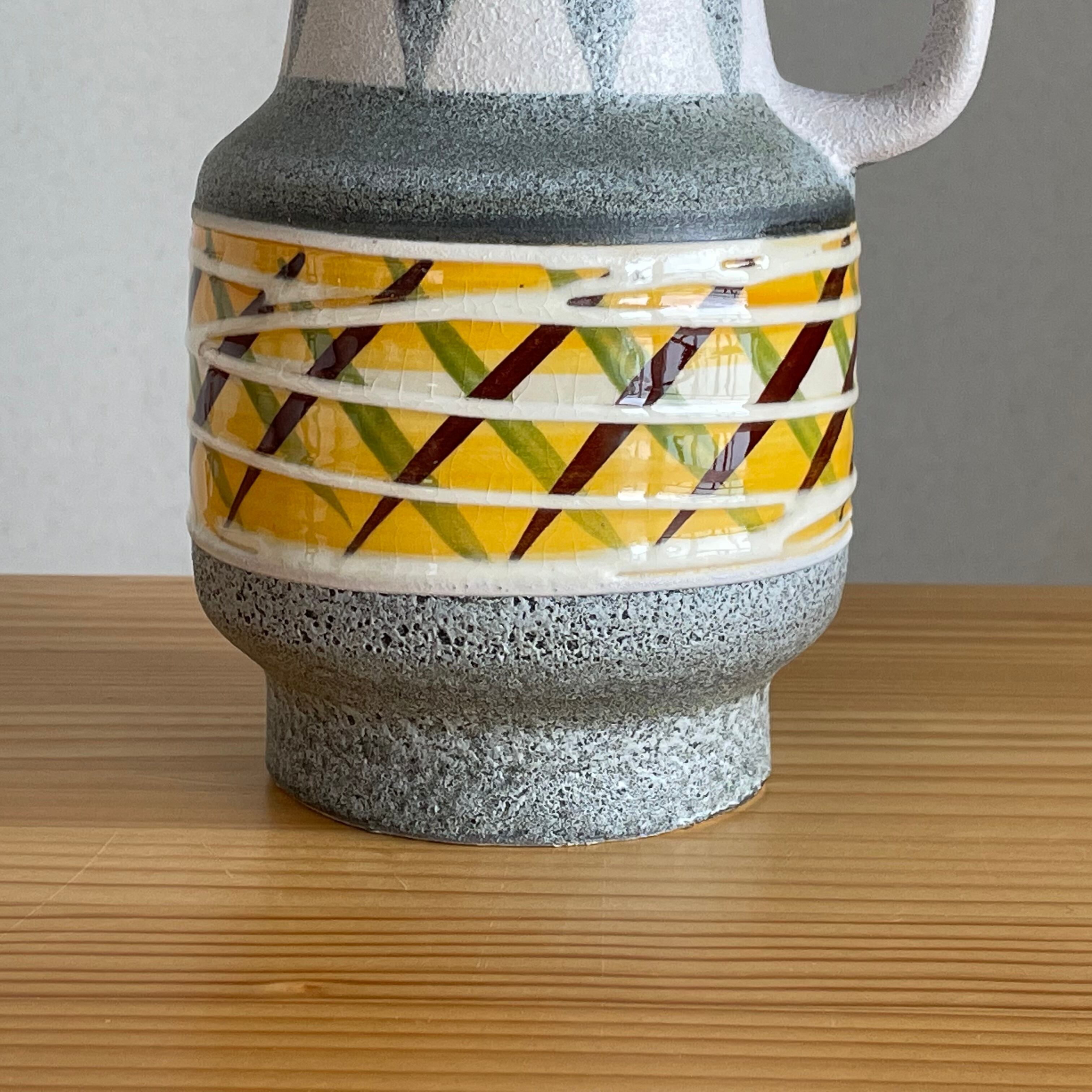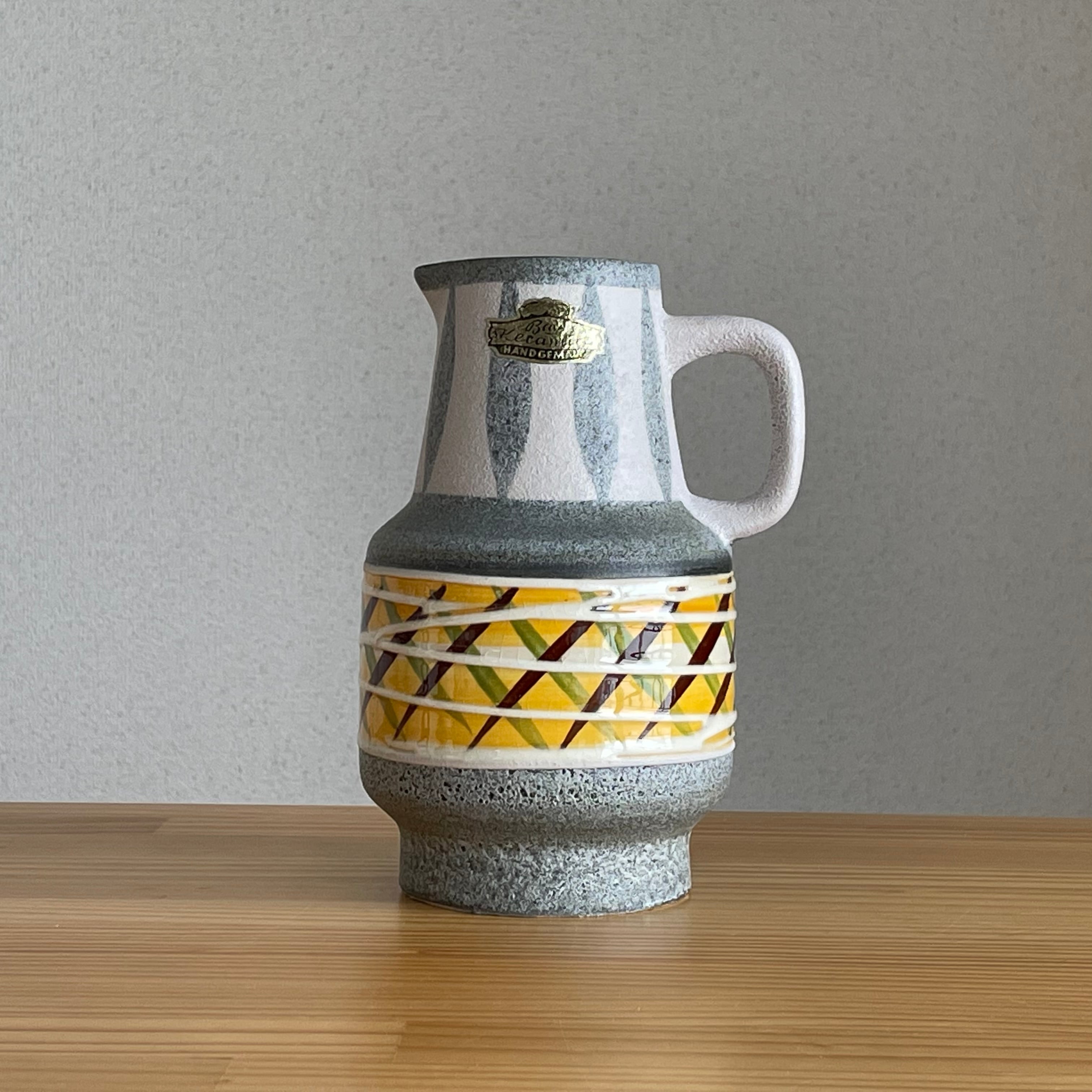 Fat Lavaらしい毒々しい釉薬使いの作品から抽象画の様なハンドペイントや幾何学模のデザインなど、様々な型やデザインがあり、ファンも多いBay keramick。こちらはオフホワイト×ライトグレーのボディにイエローのチェック柄がポイントになった可愛いらしい作品です。花瓶の内側がイエローになっているのも花を生けた時にポイントになり大変お勧めです。