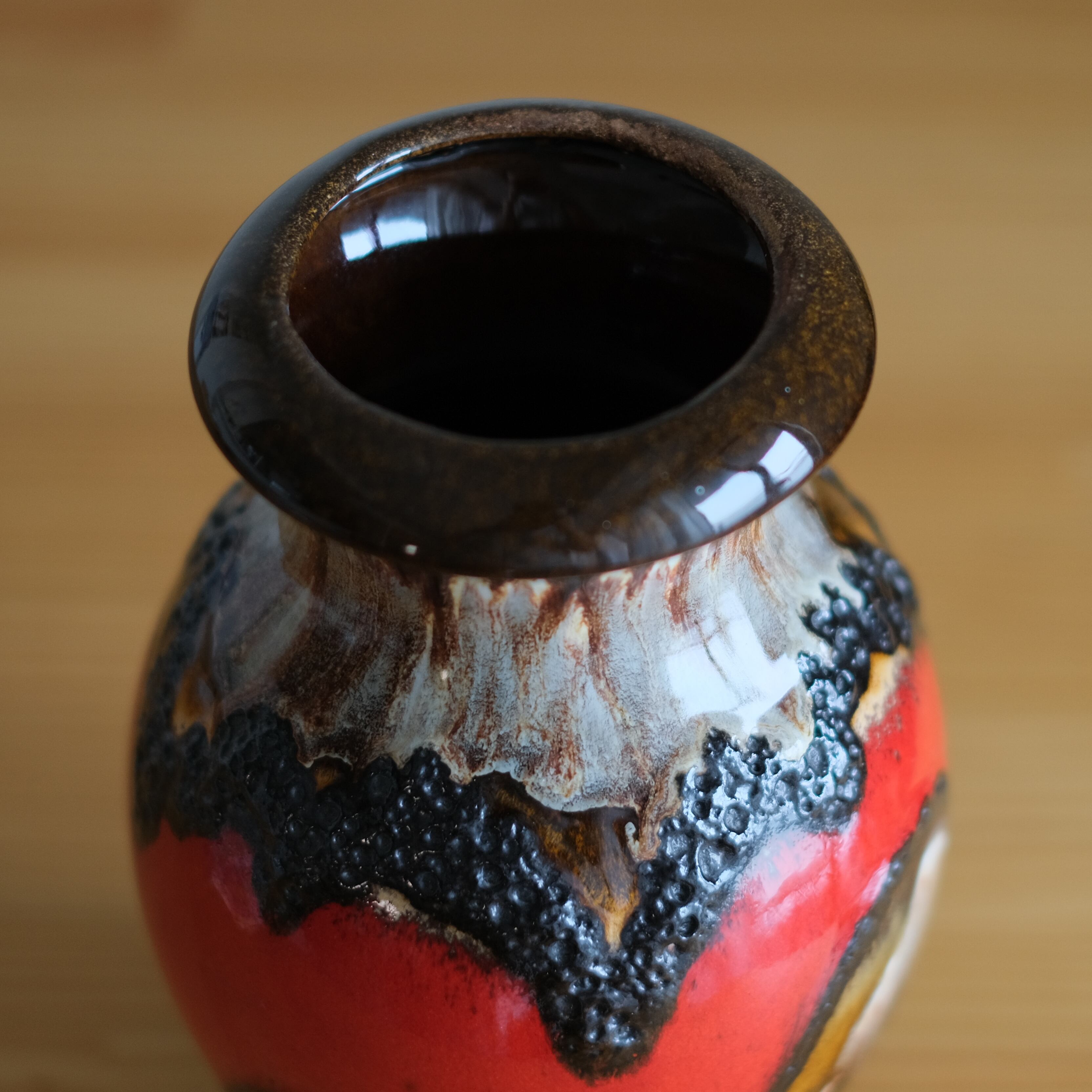 こちらはセンターのオレンジの模様がコウモリに似ている事から通称“batman”とも呼ばれているモデルです。オレンジの縁にはブラックのFat Lava釉薬がパイピングされており、とてもセンスの良い作品です。サイズもやや大きいサイズでショップのインテリアとしても大変オススメです。