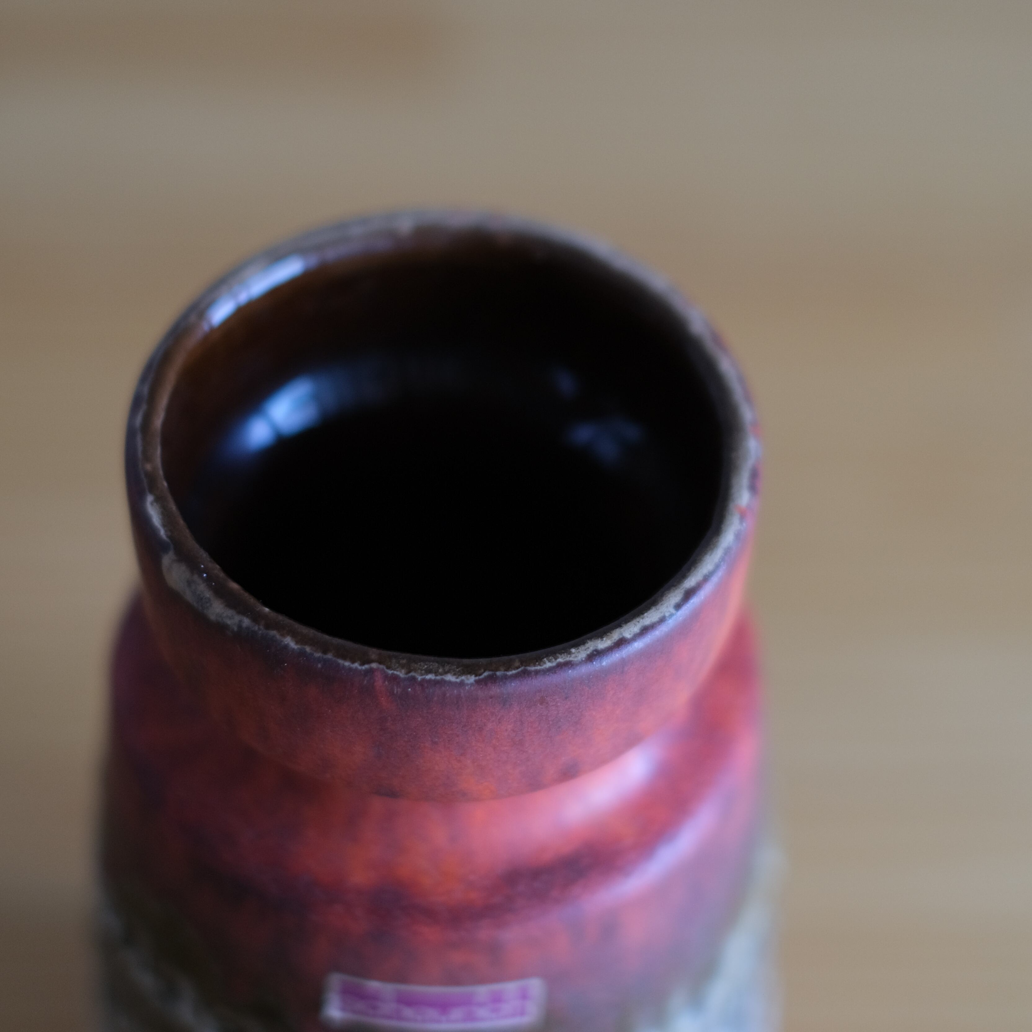 こちらは、これぞFat Lavaという素晴らしい釉薬使いでかなりインパクトの強い作品です。トンガスツールやヴィンテージラグとの相性は抜群で、かなりオススメです。242-22という型番は、1963年、1967年、1971年、1980年の4度型が代わり、こちらは1980年に誕生した型と言われています。高さが22cmとオブジェとして存在感があり、生花やドライフラワーを飾るのにも丁度良いサイズで大変お勧めの作品です。
