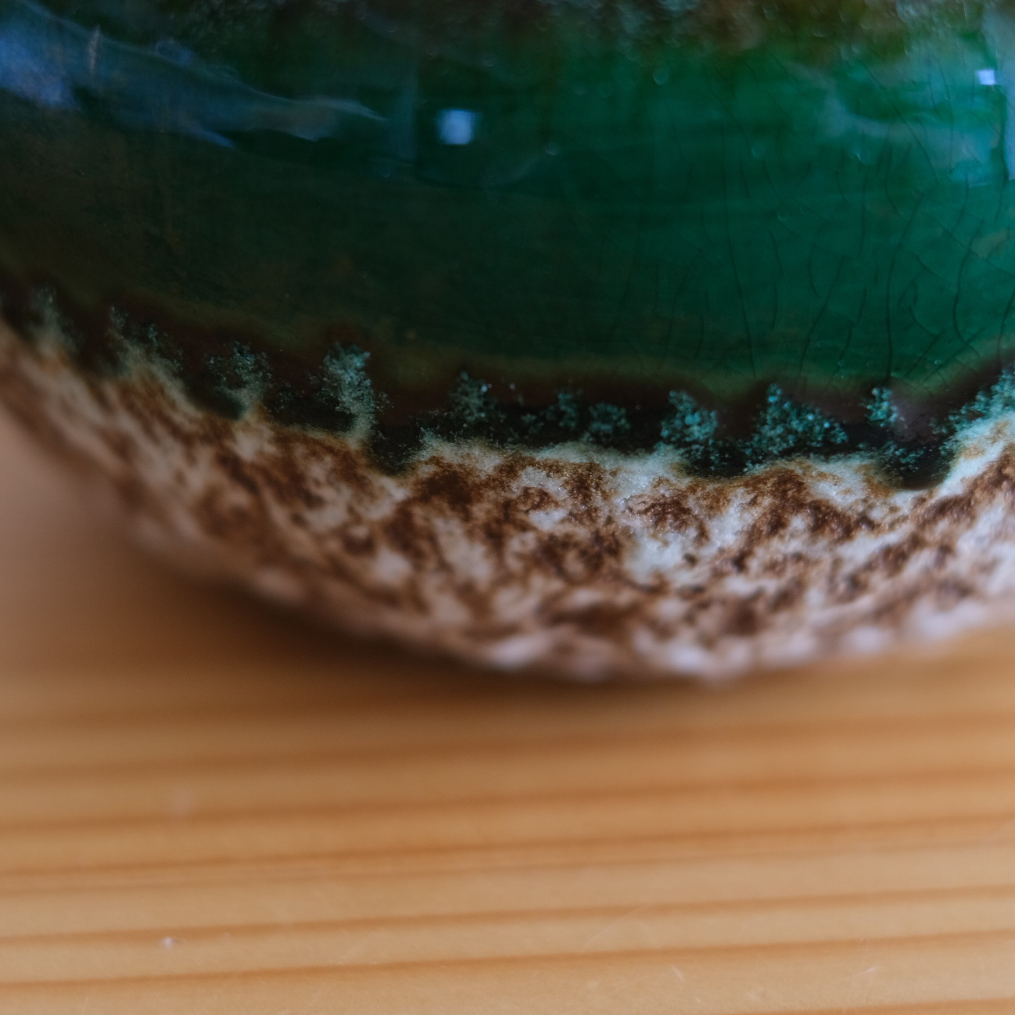 赤やグリーンの鮮やかな釉薬とFat Lava釉薬のコントラストが非常に綺麗な作品。ミッドセンチュリーを象徴するデザインで海外のコレクターにも非常に人気の高いjopeko。