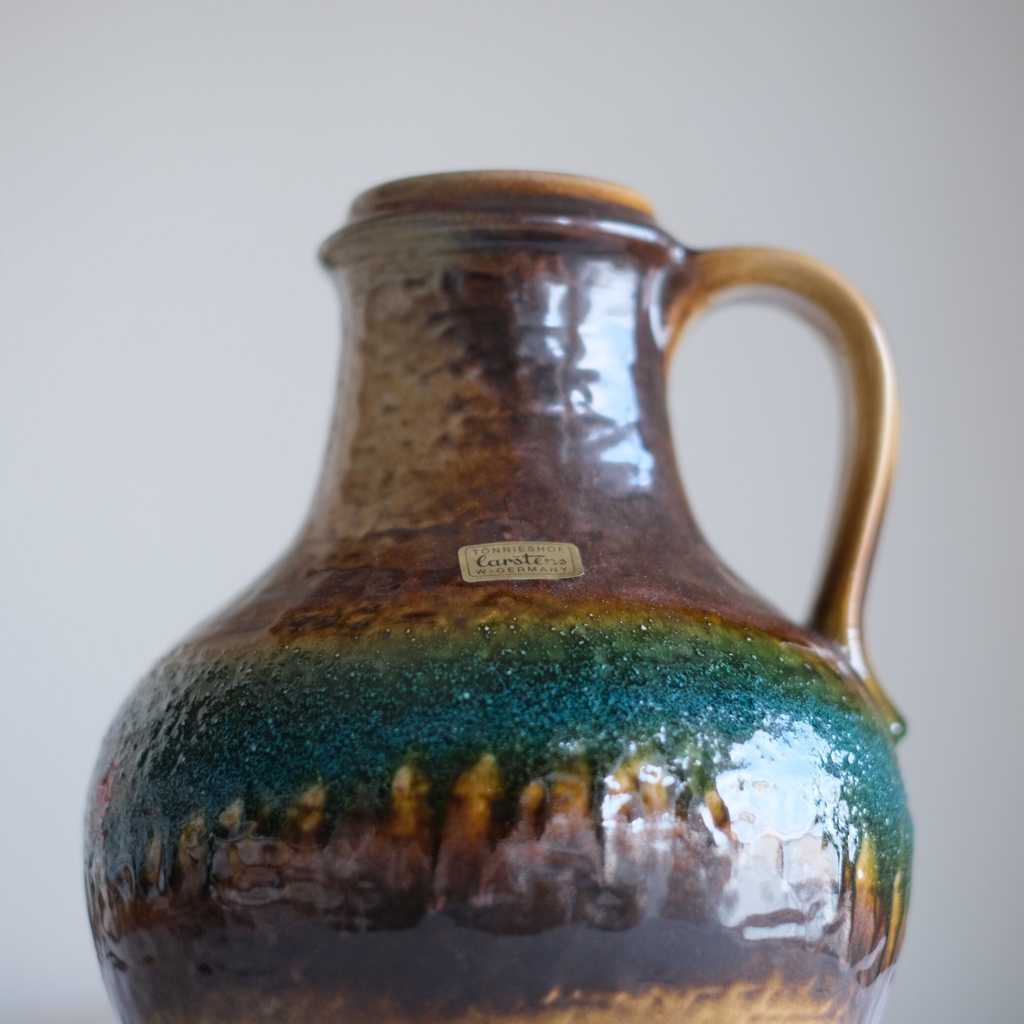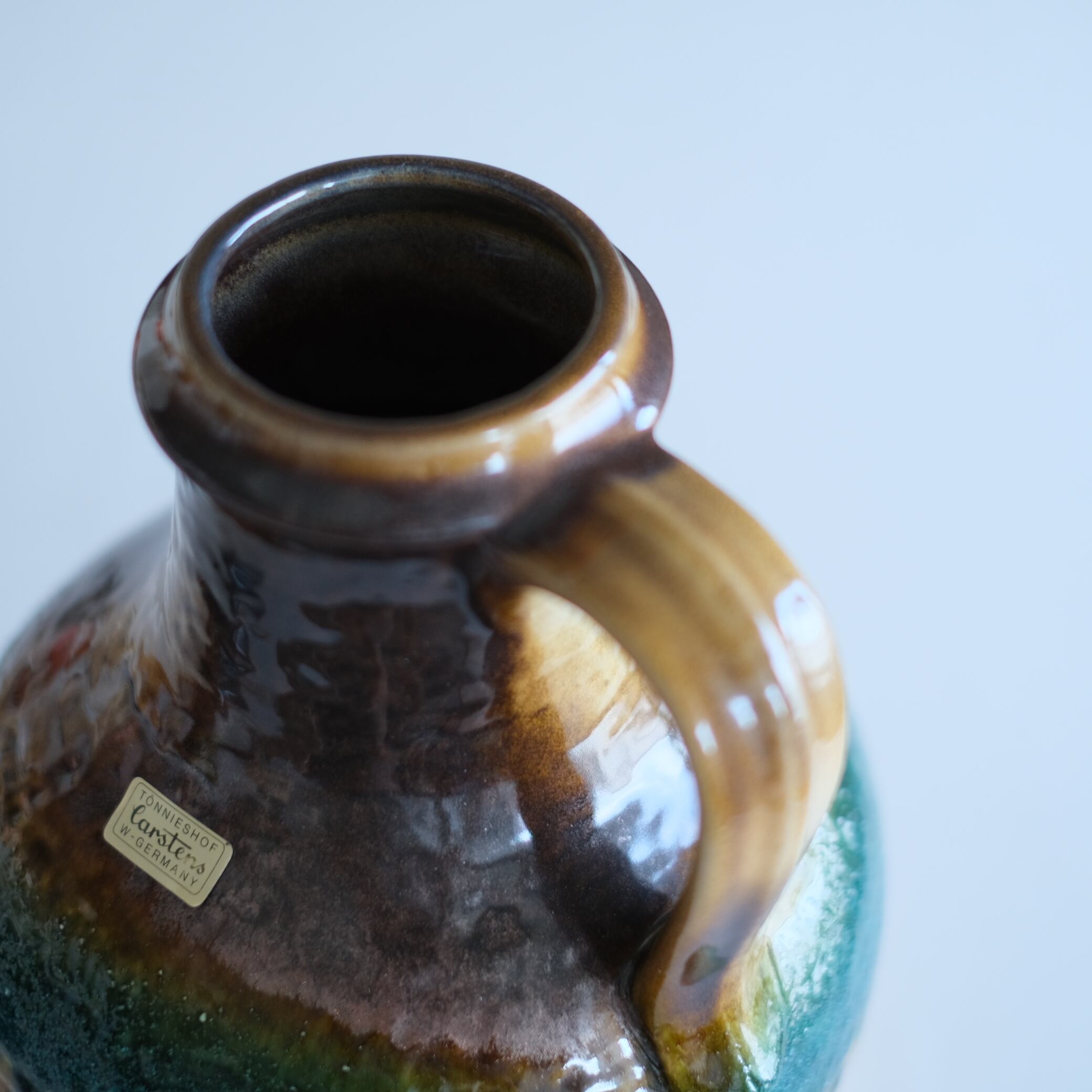 花器の品質の高さでも評価の高いcarstens。彫刻的なデザインや独特な釉薬使い等、アートの様な作品も多く面白いメーカーです。こちらの花器は〝和〟を感じる配色.釉薬使いでありながら、センターにはブルーがかった深みのあるグリーンのファットラバ釉薬が垂れ流れた侘び寂びの効いたセンスの良い花器です。