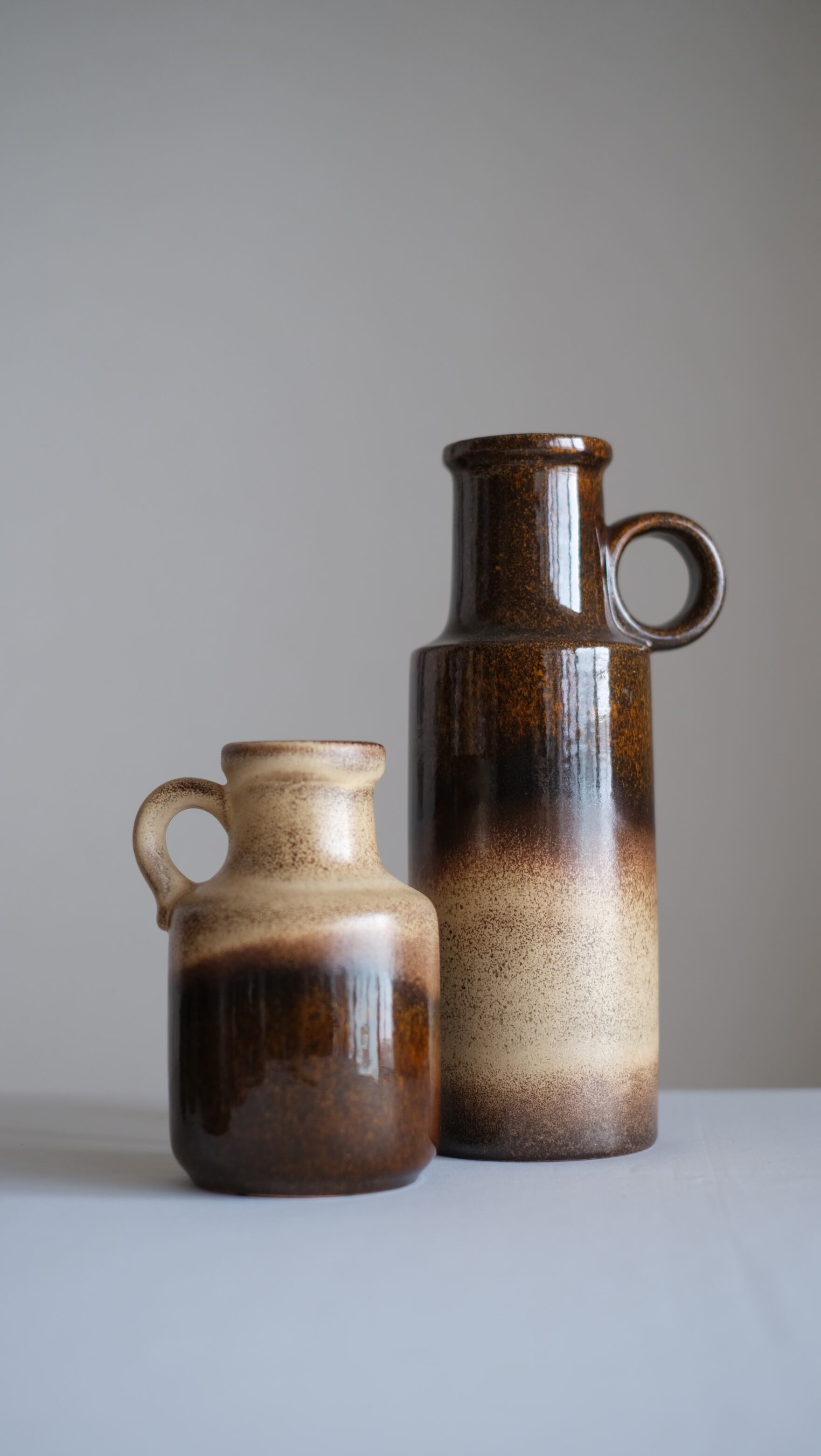 scheurichの中では個人的に好きなフォルムでコレクションもしている401シリーズ。20cmと28cmの2サイズあり、こちらは28cmの大きいタイプになります。マットなベージュと光沢のあるダークブラウンの釉薬の相性が非常に良くダークブラウンが空間を締める役割りもあるため、サイドボードやシェルフ等様々な場所にレイアウトし易い花器です。