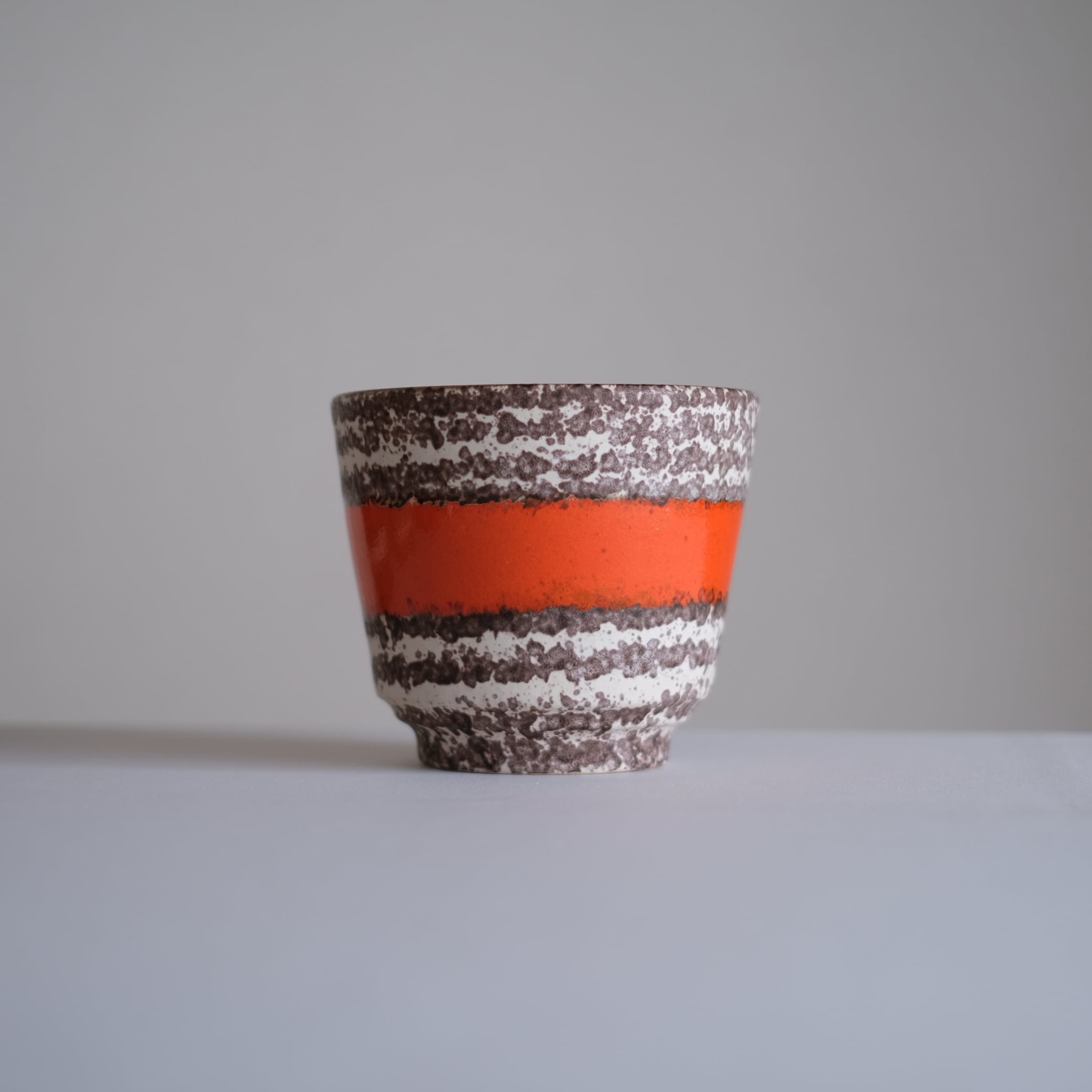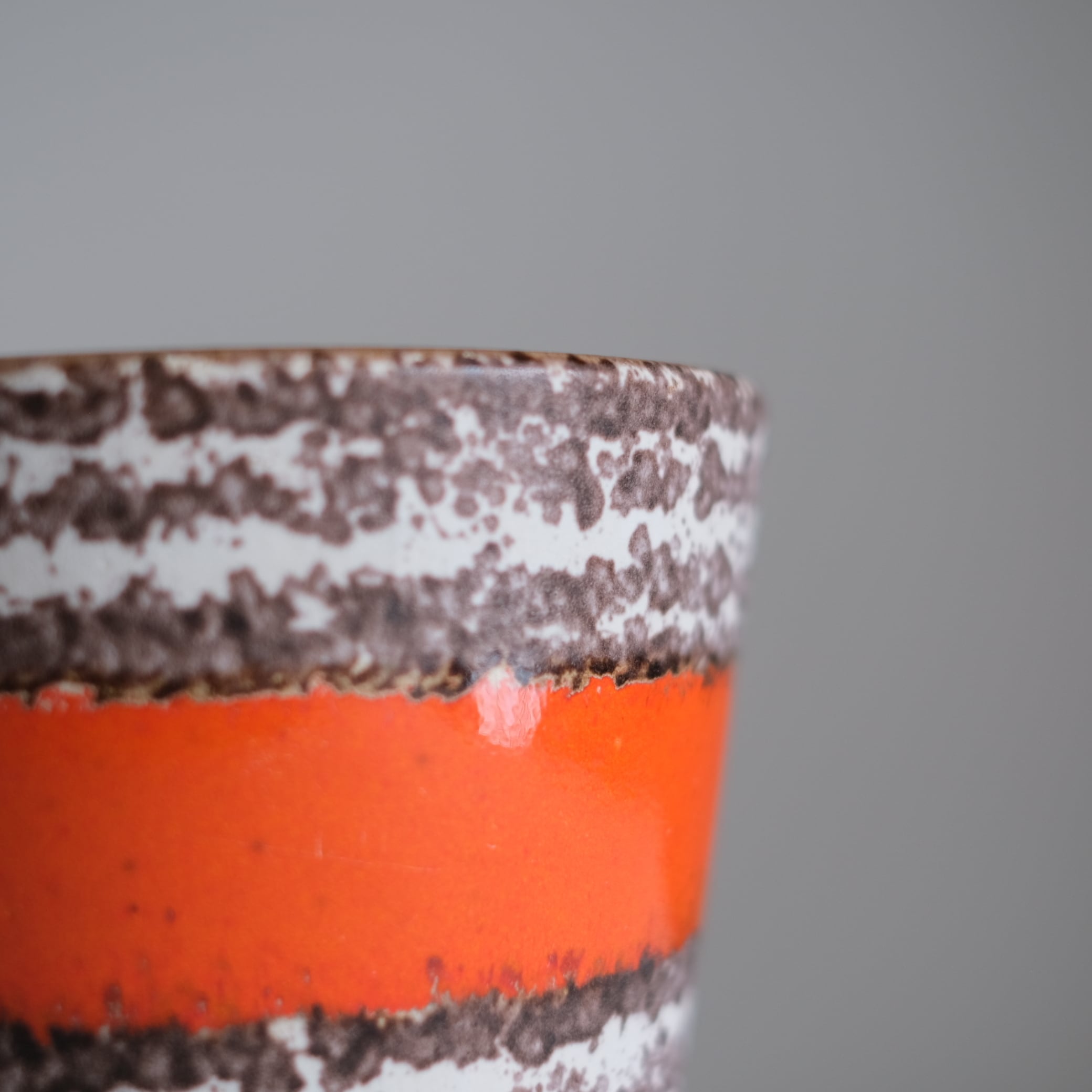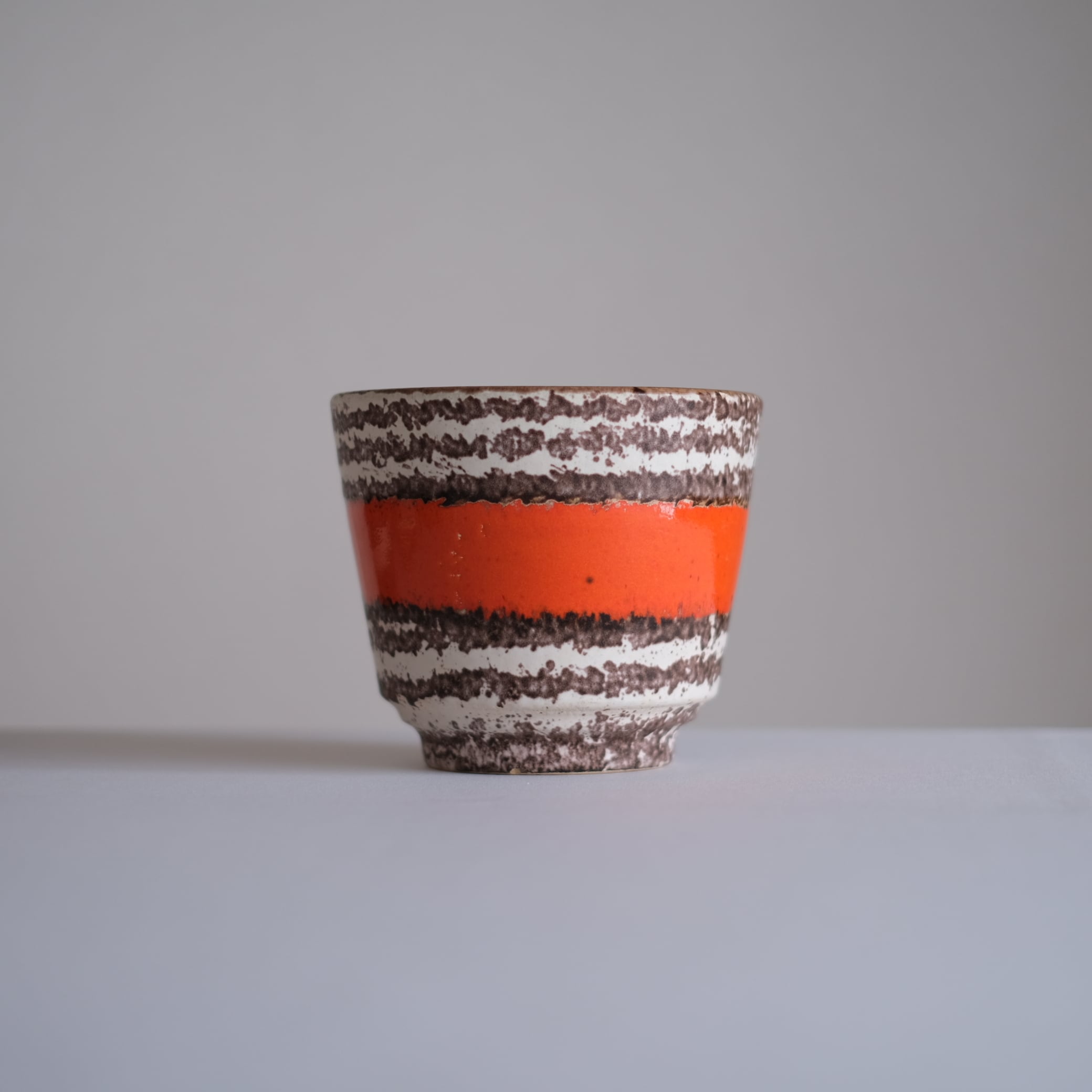 多くは北欧に向けて輸出されていたため、北欧家具との相性もよく非常にセンスの良い花器メーカーです。こちらはハンドペイントで描かれたボーダーにオレンジのアクセントカラーが効いたデザインで、様々なスタイルのインテリアに合わせ易いプランターです。